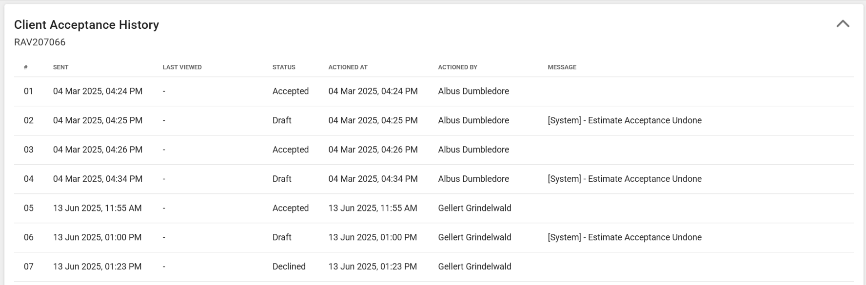 This provides a clear audit trail of client interactions with the proposal, ensuring full visibility of the acceptance process.