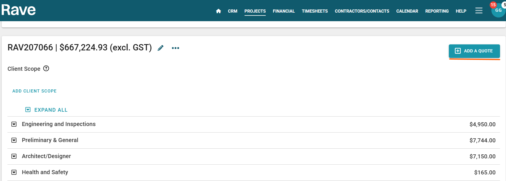 The full project value to the client excluding GST, including all markup.TOTAL Project Value (Incl. GST)