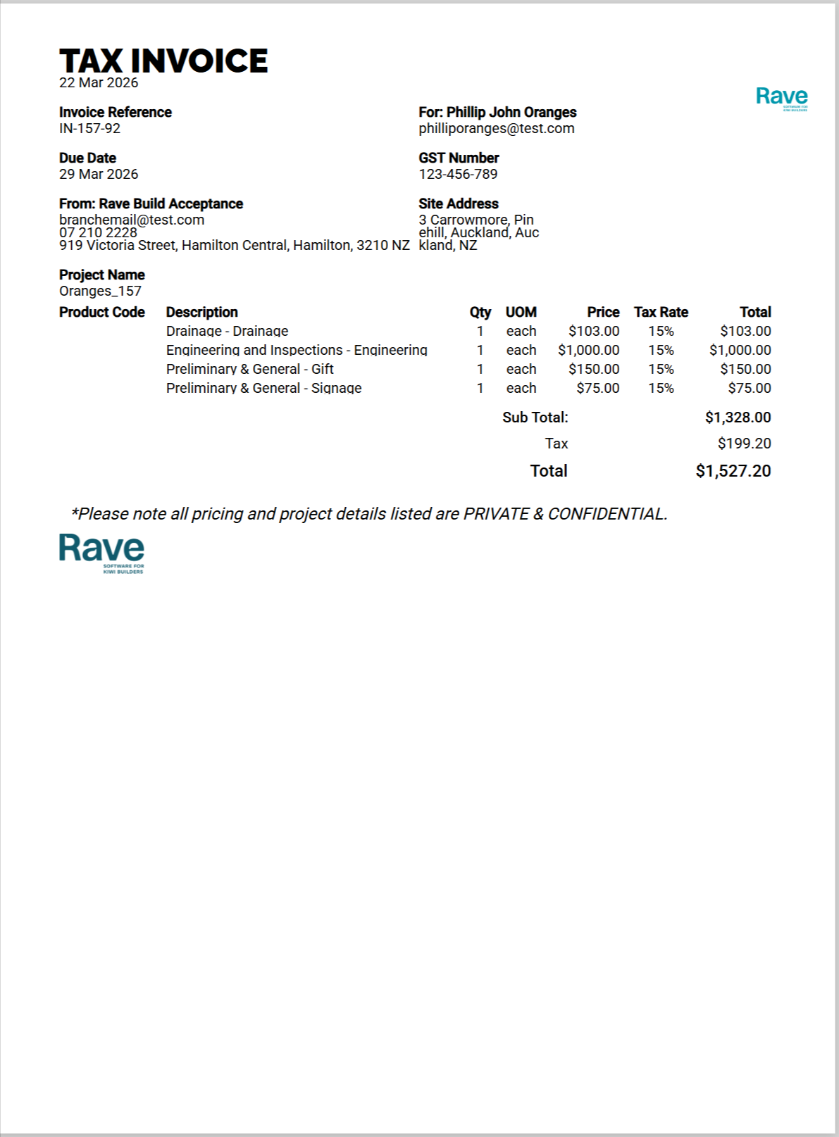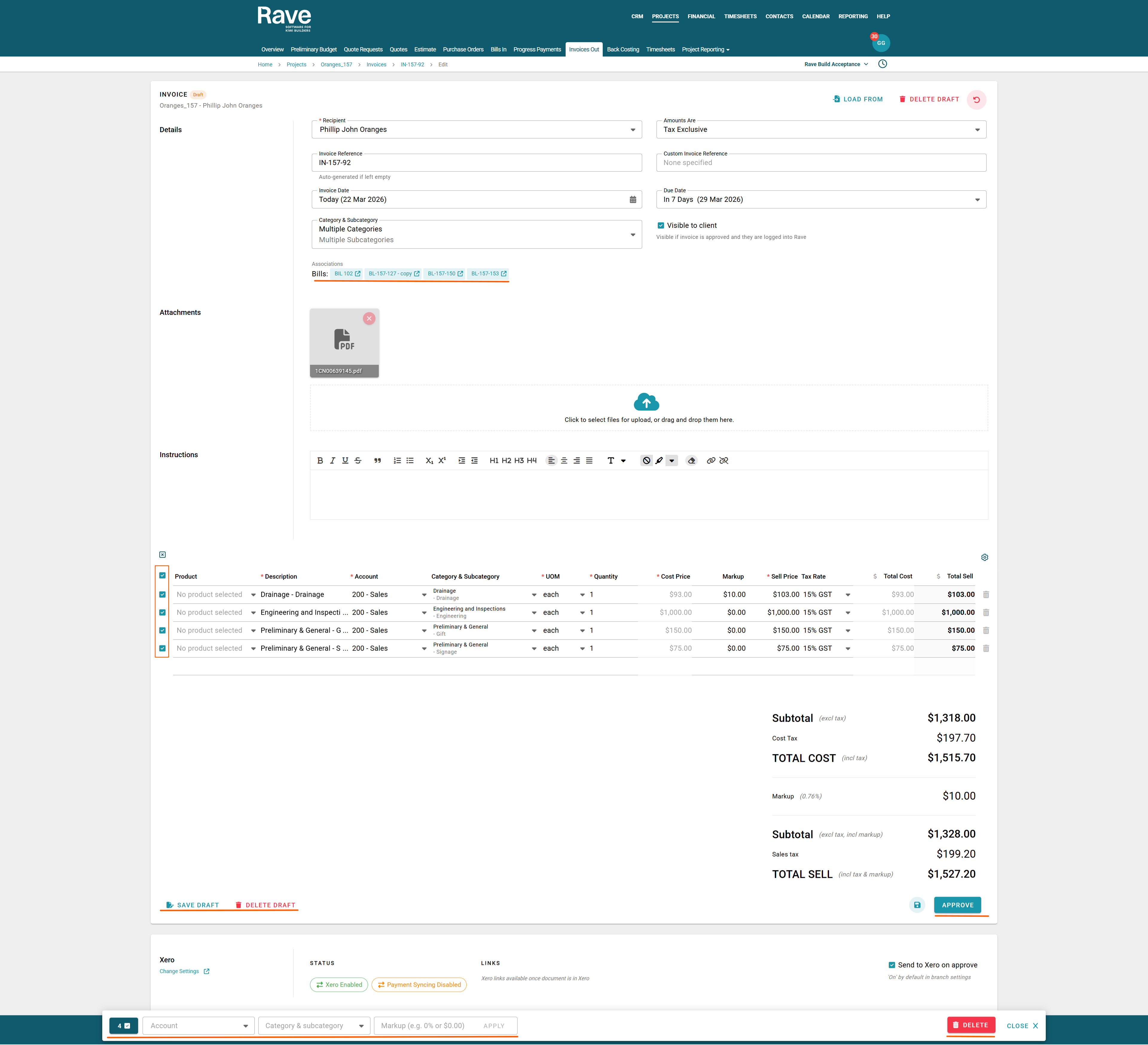 You can choose to type in invoice instructions, which will appear on your Xero invoice and the Rave PDF