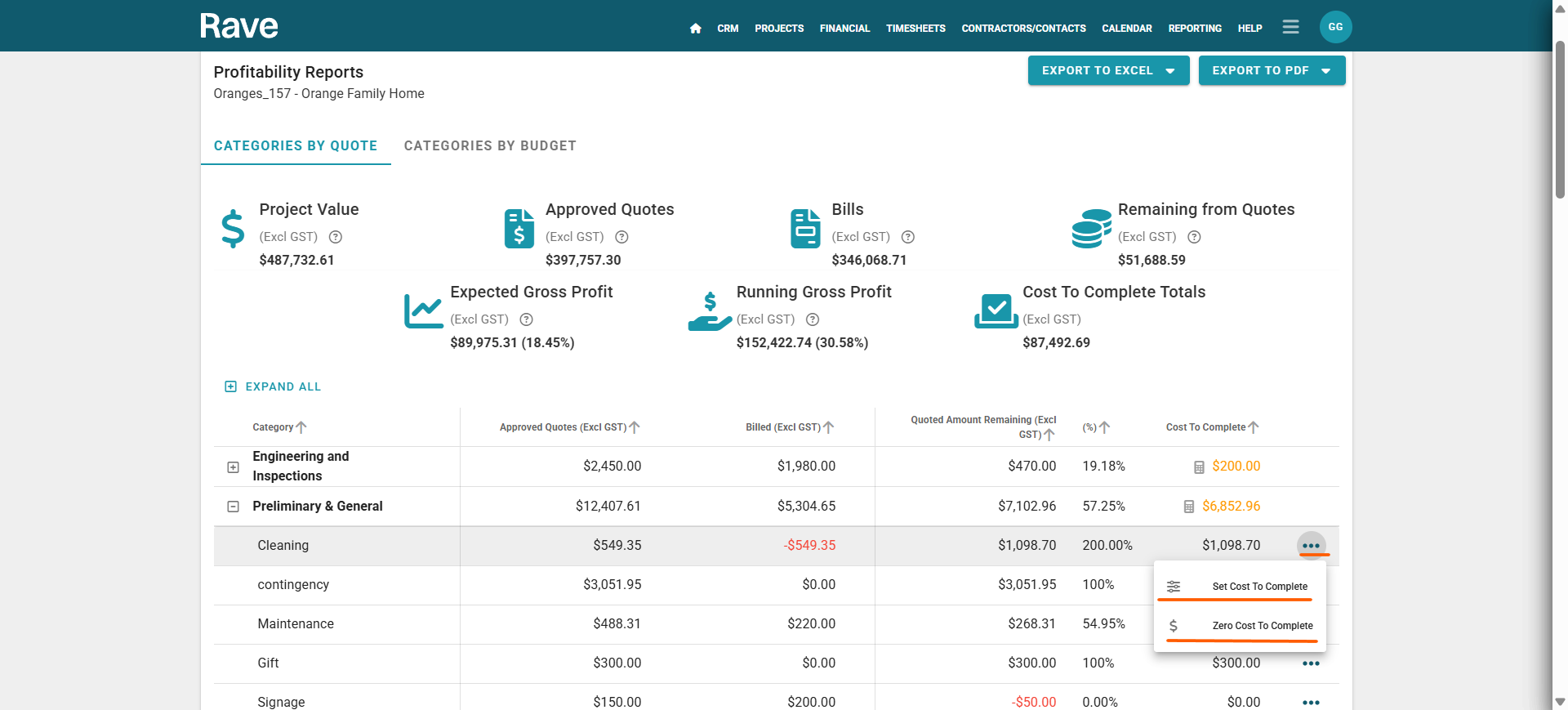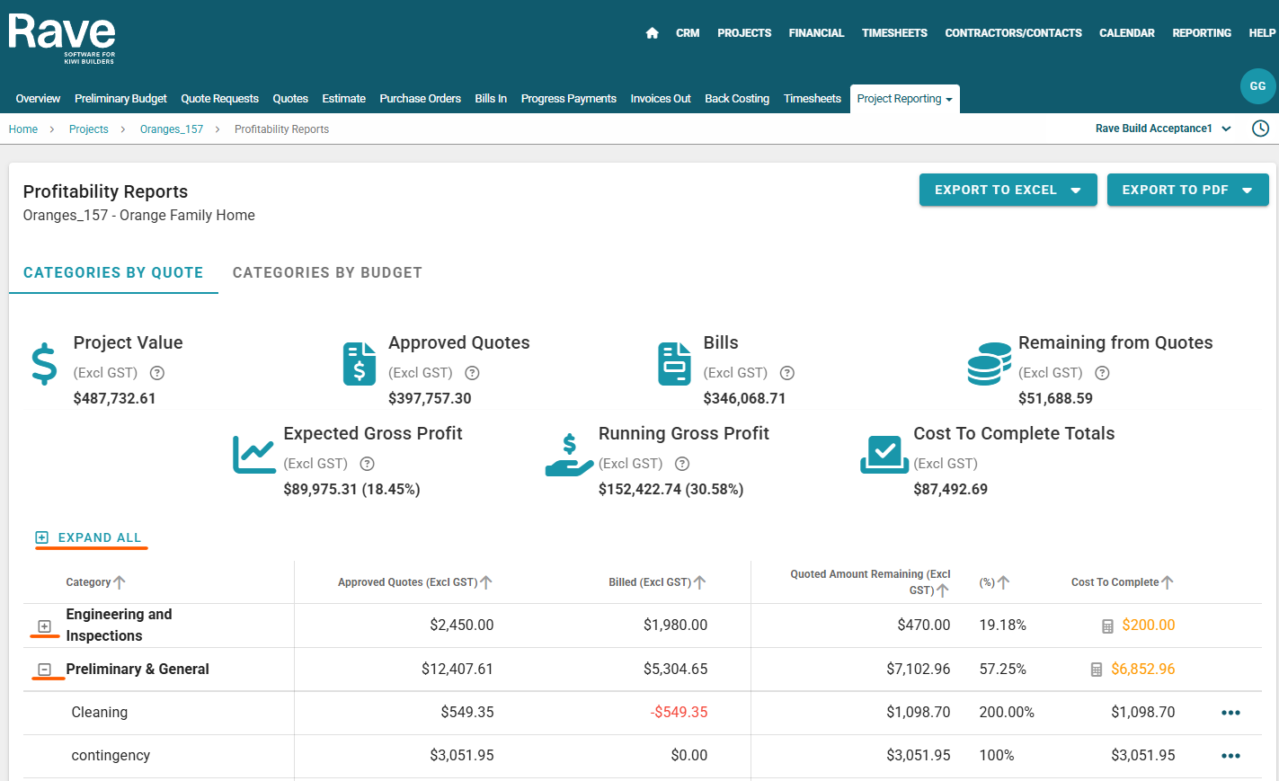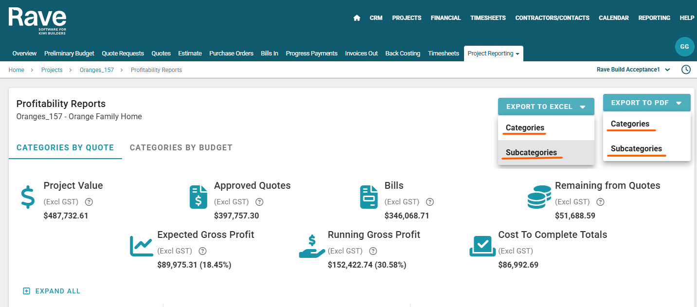 The Profitability Report is to help you track and manage the financial performance of a project in real time.