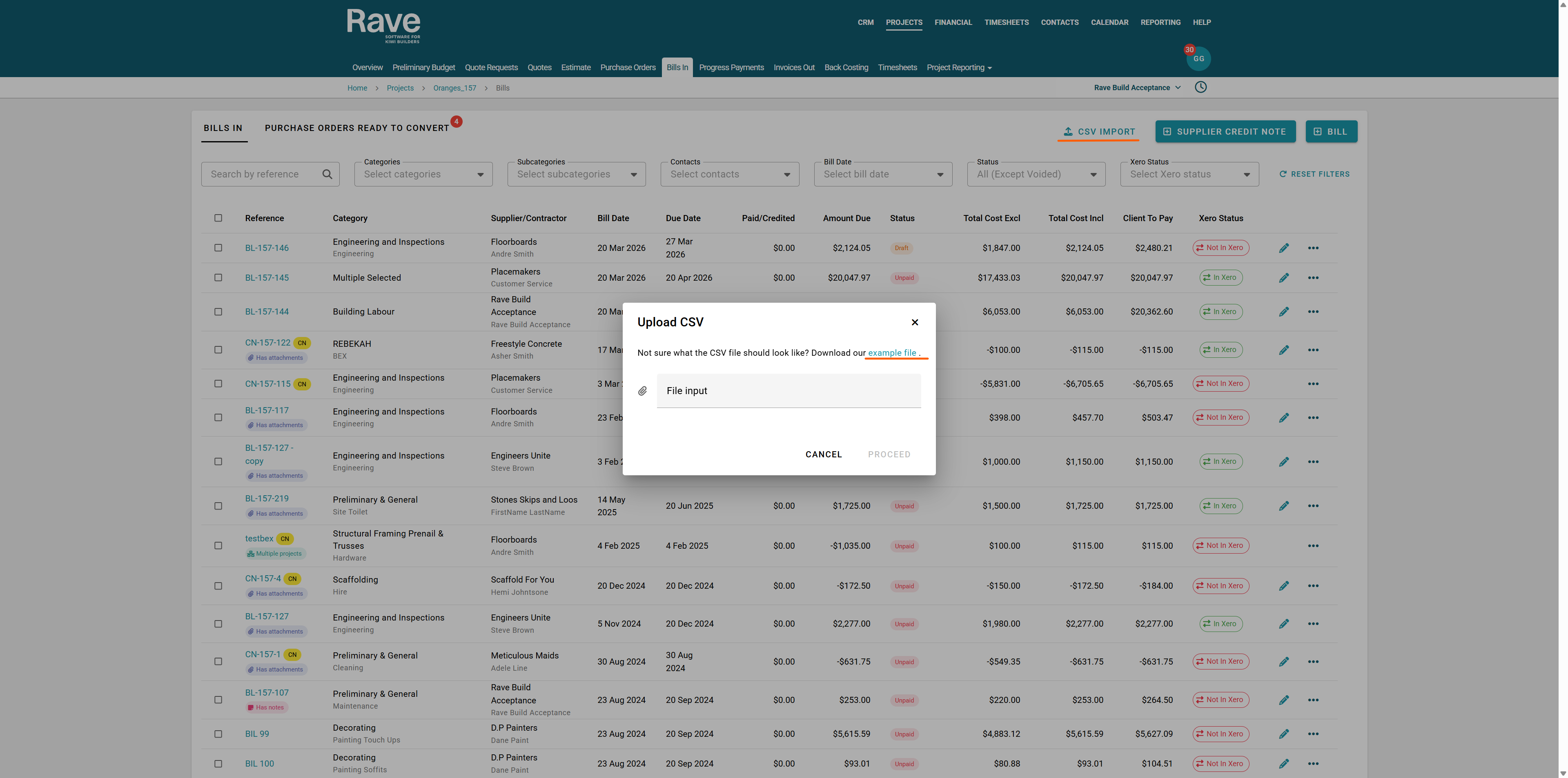 You can load your Supplier and Contractor bills in to RAVE via a CSV file i.e. you are just getting started with RAVE's FMS and/or need to move this information from another financial system to RAVE's FMS.
