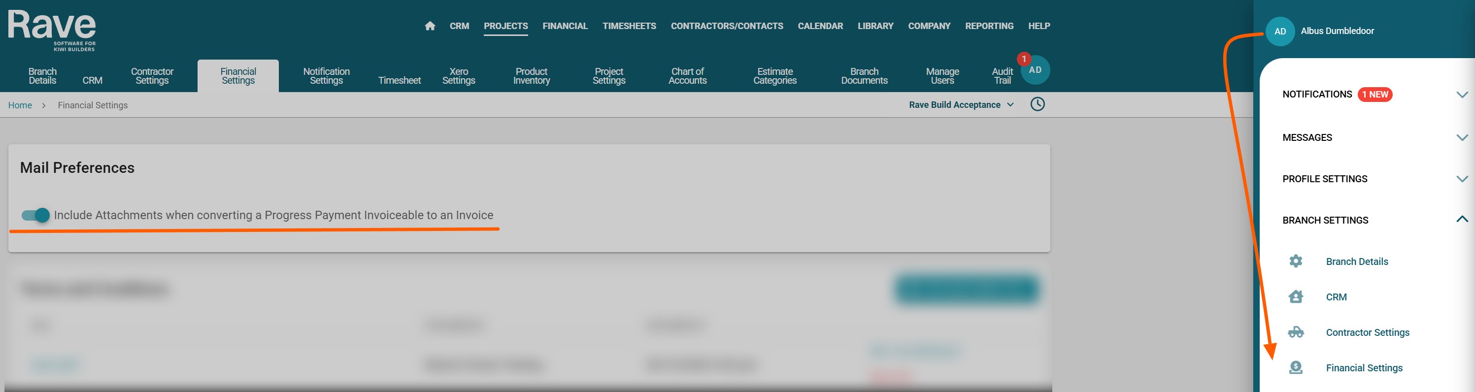 To turn this on select your profile drop down from the top right of the screen, select Financial Settings and the slide on the Mail Preferences option.