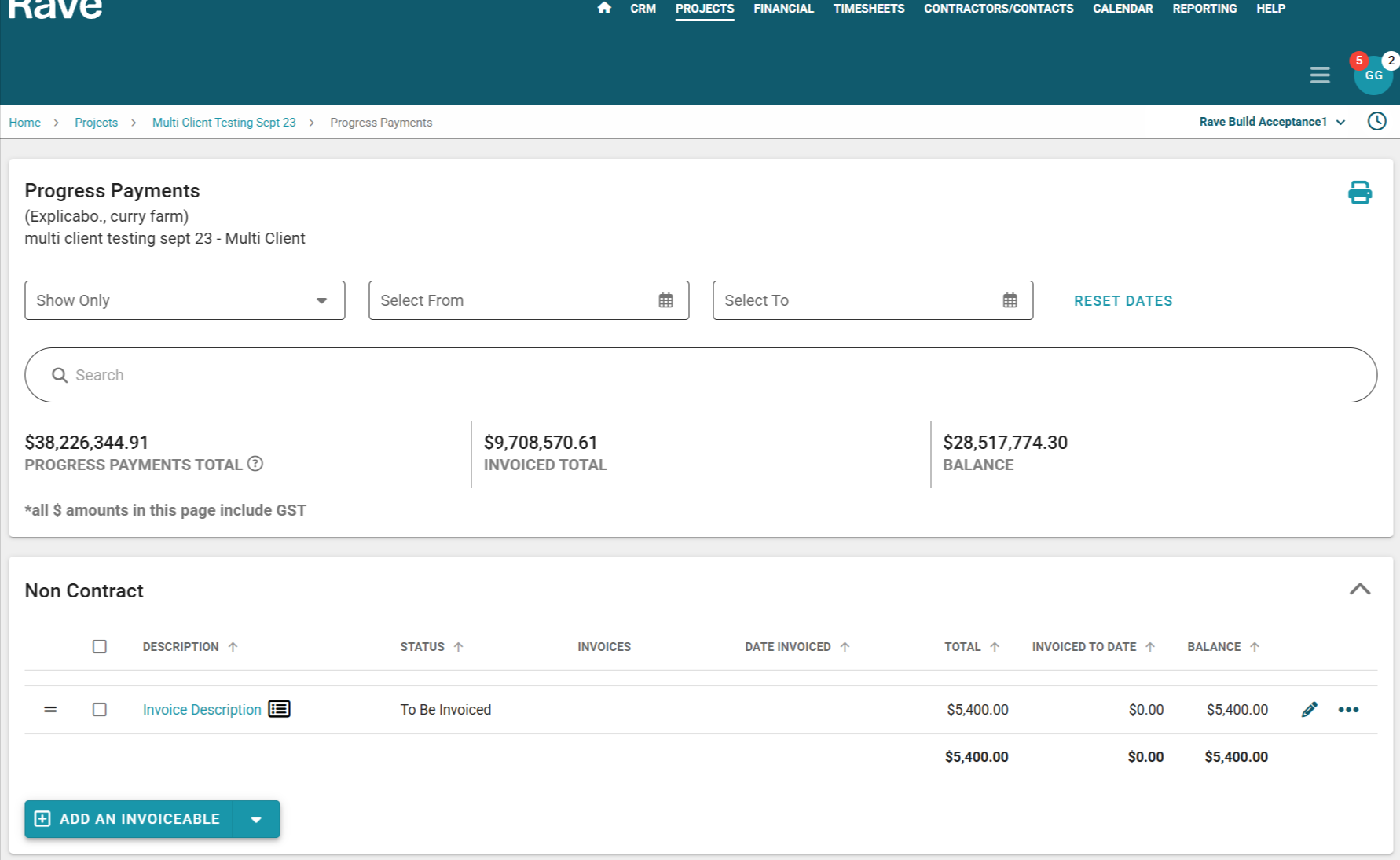 Note: Items with a * have separate permissions to edit/delete if you are the not the original person who loaded the document, comment, note to the invoiceable. The permission is under Manage Users and is called Manage others Progress Payment Content. With this permission enabled you are able to edit/delete all attachments, notes and comments on an invoiceable up until its been invoiced.