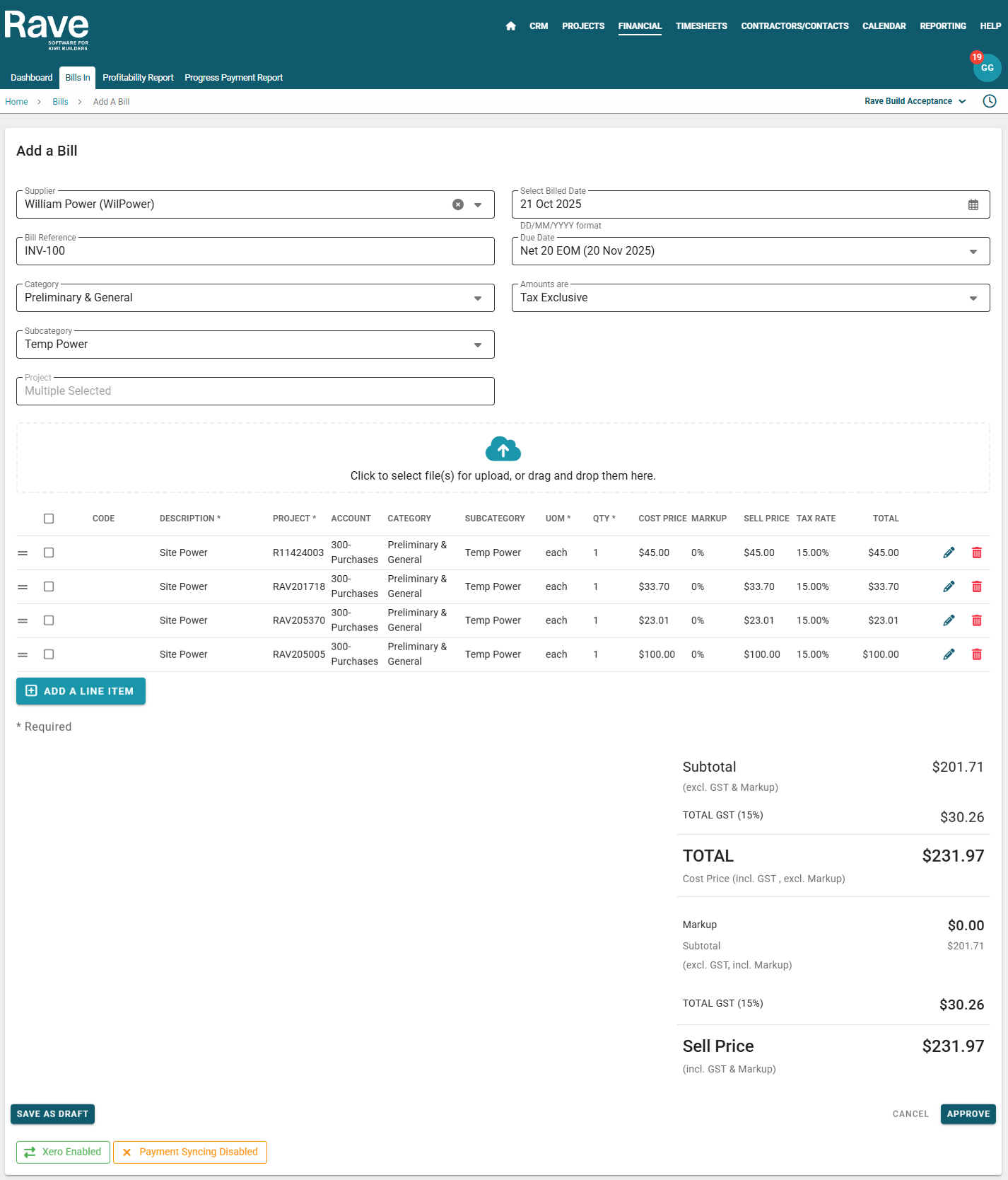 RAVE’s Financial Management System includes an amazing feature called Branch-Level Bills—a real game changer. It simplifies managing bills and credit notes that need to be spread across multiple projects.