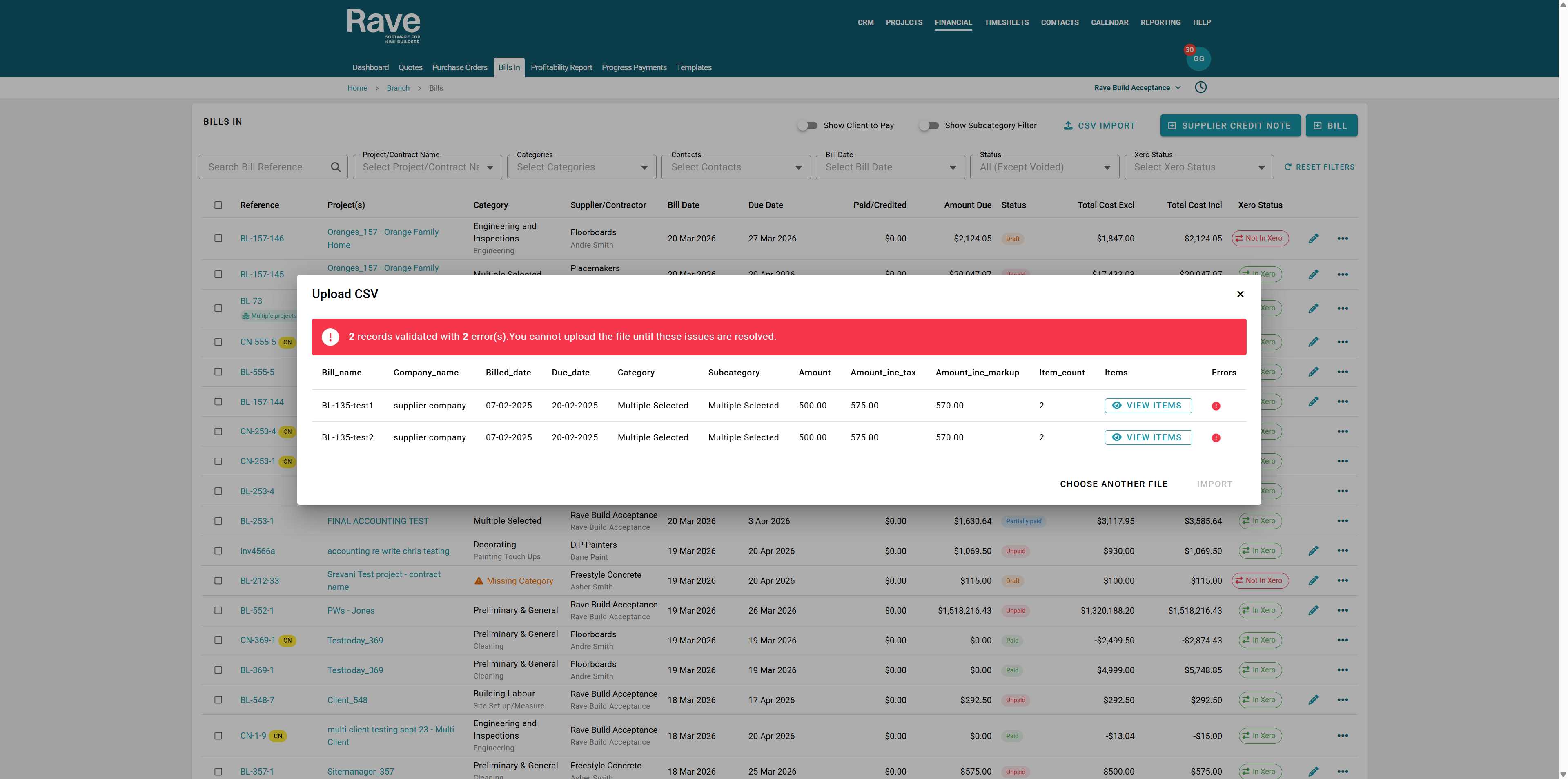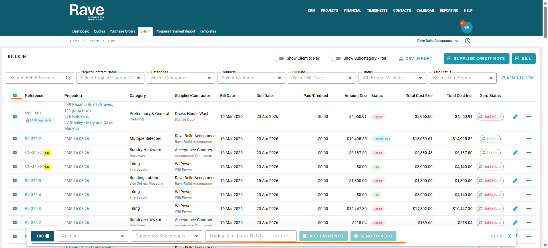 In simple terms, the Branch-Level Bill workflows let you load multi-project bills and credit notes from a single supplier into RAVE, then split the costs or credits across several jobs.