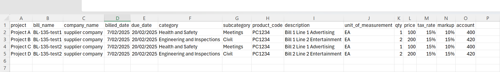 The sample File will look exactly as shown in the Excel screenshot below.