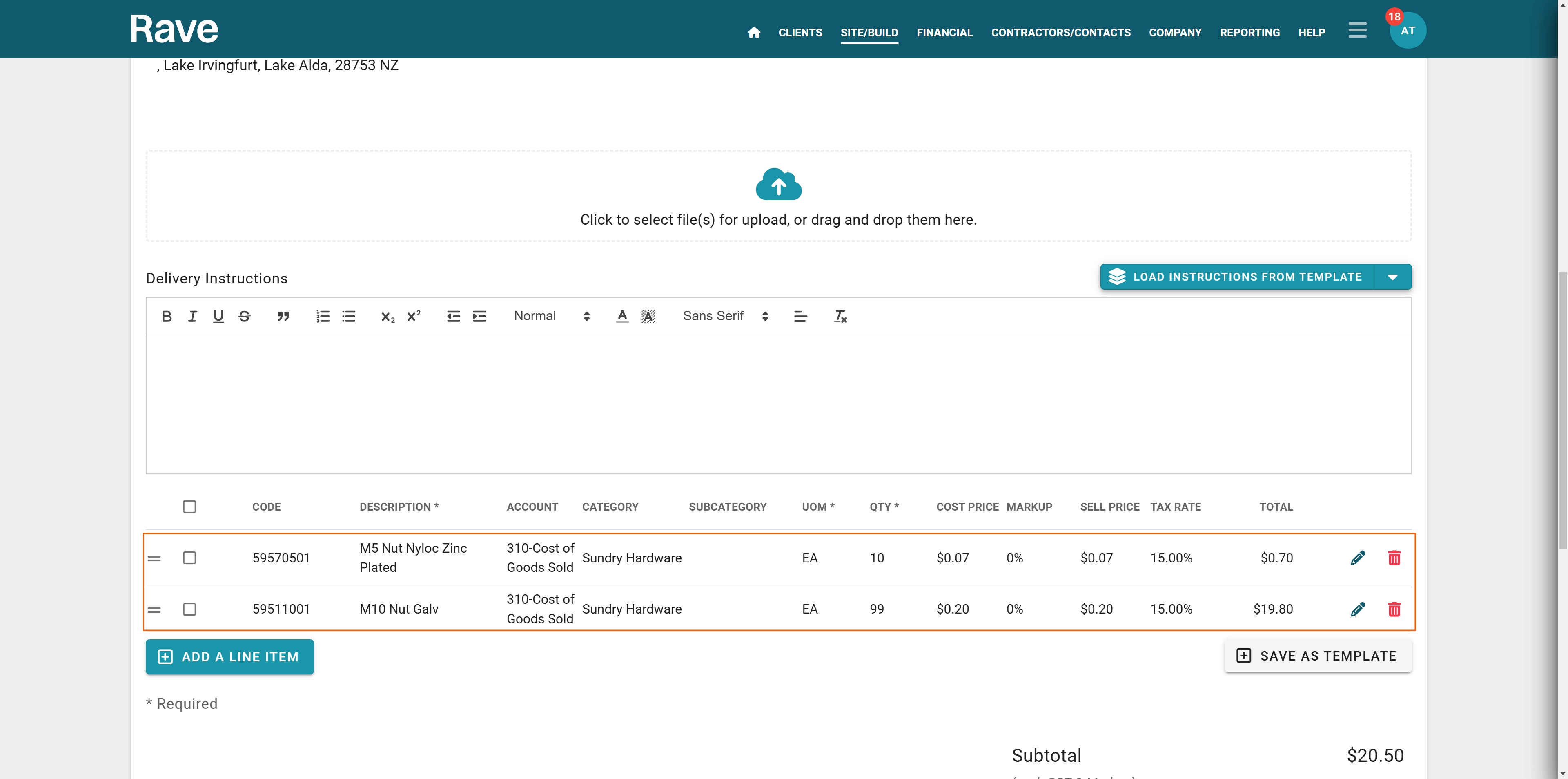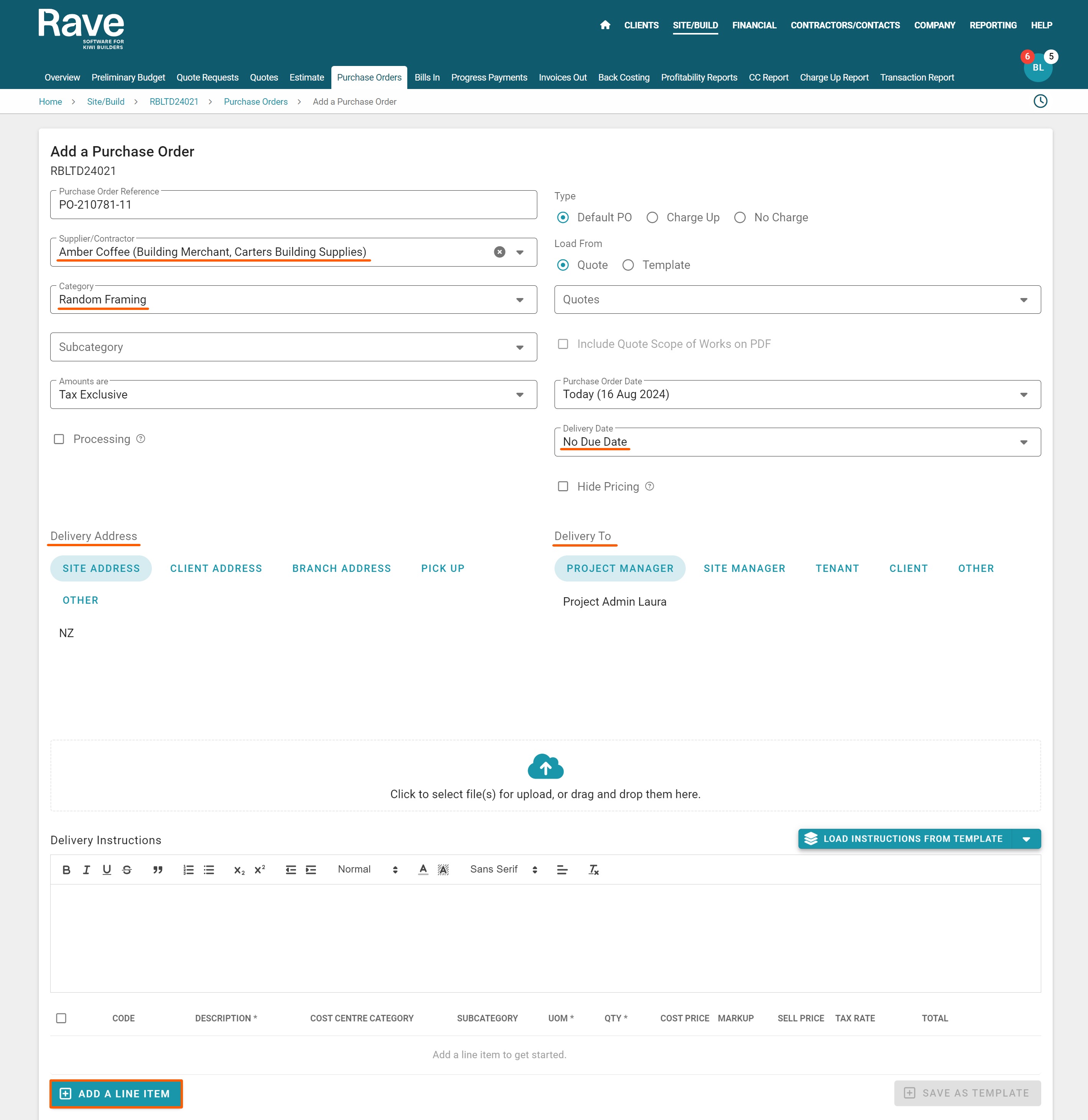 Click ‘Add Item’ to start adding line items.