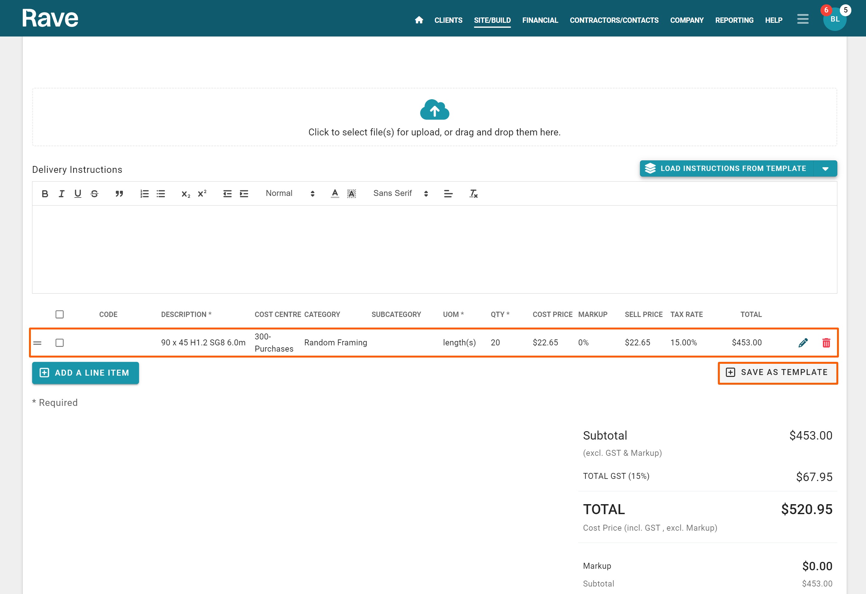 You can also create a new Purchase Order in RAVE that is not linked to a quote or estimate price. This is useful when you need to order materials or services outside of an accepted quote.