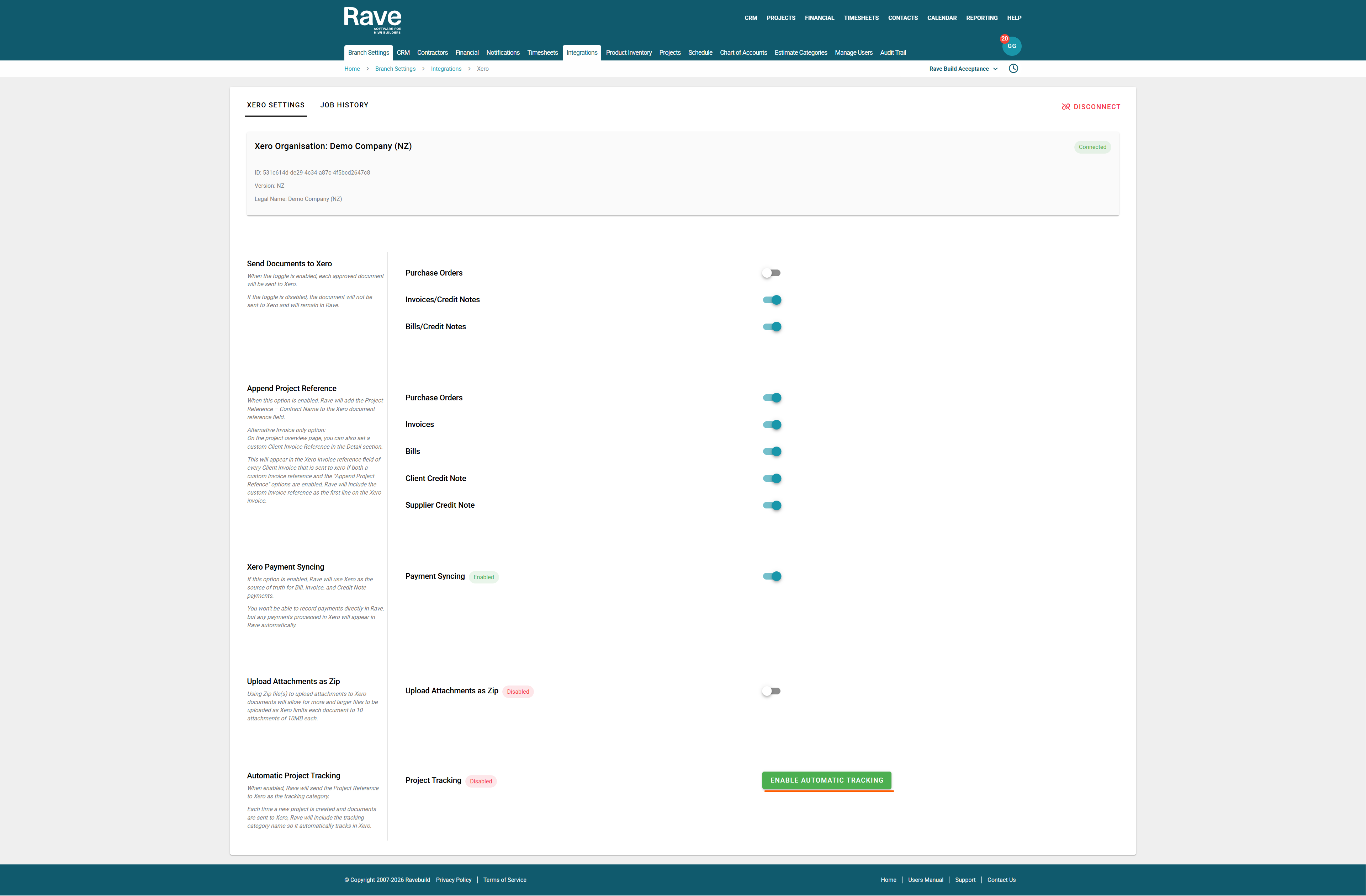 Xero Tracking Categories is how Xero manages (and groups) a RAVE project's documents using your project's job number as the unifying reference. You can filter reports in Xero using the tracking category to find all expenses and income related to a specific project or projects.