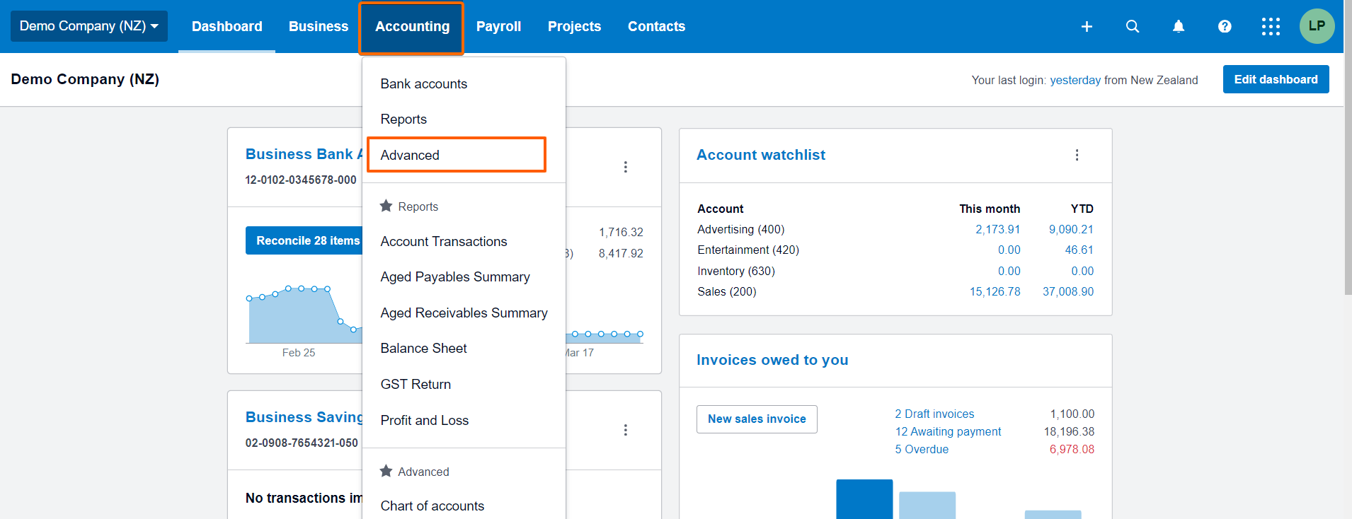 - Then within Xero, click on the 'Accounting' tab