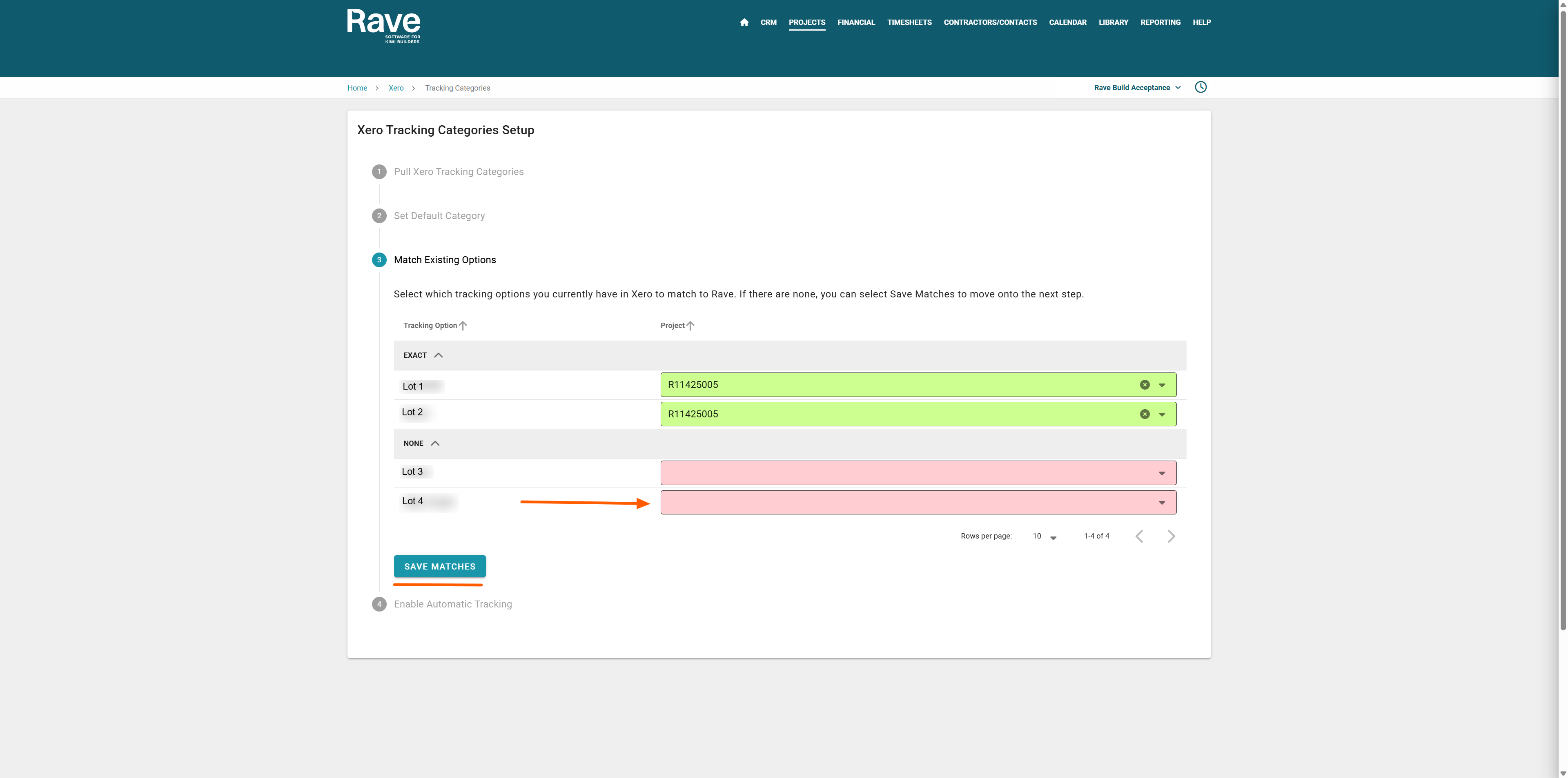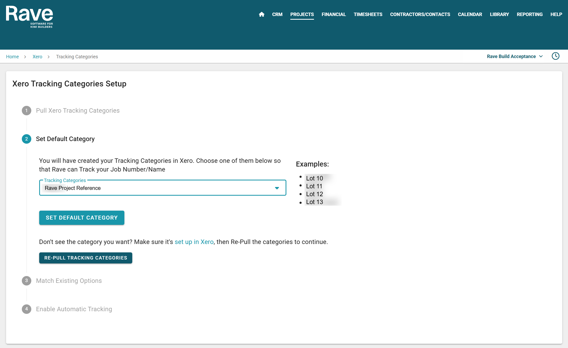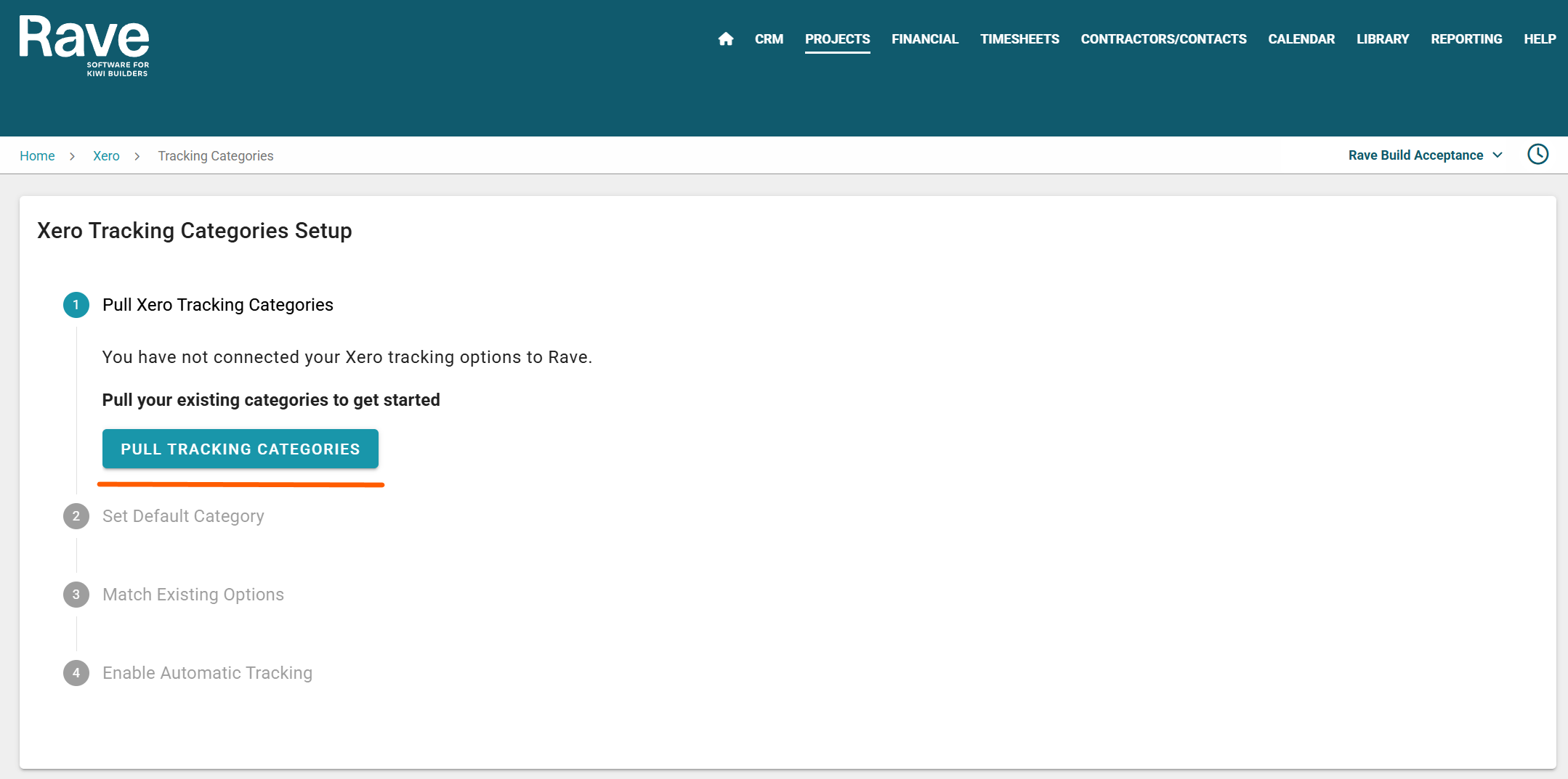- You will then need to match all existing jobs in RAVE with any 'projects' you already have in Xero.