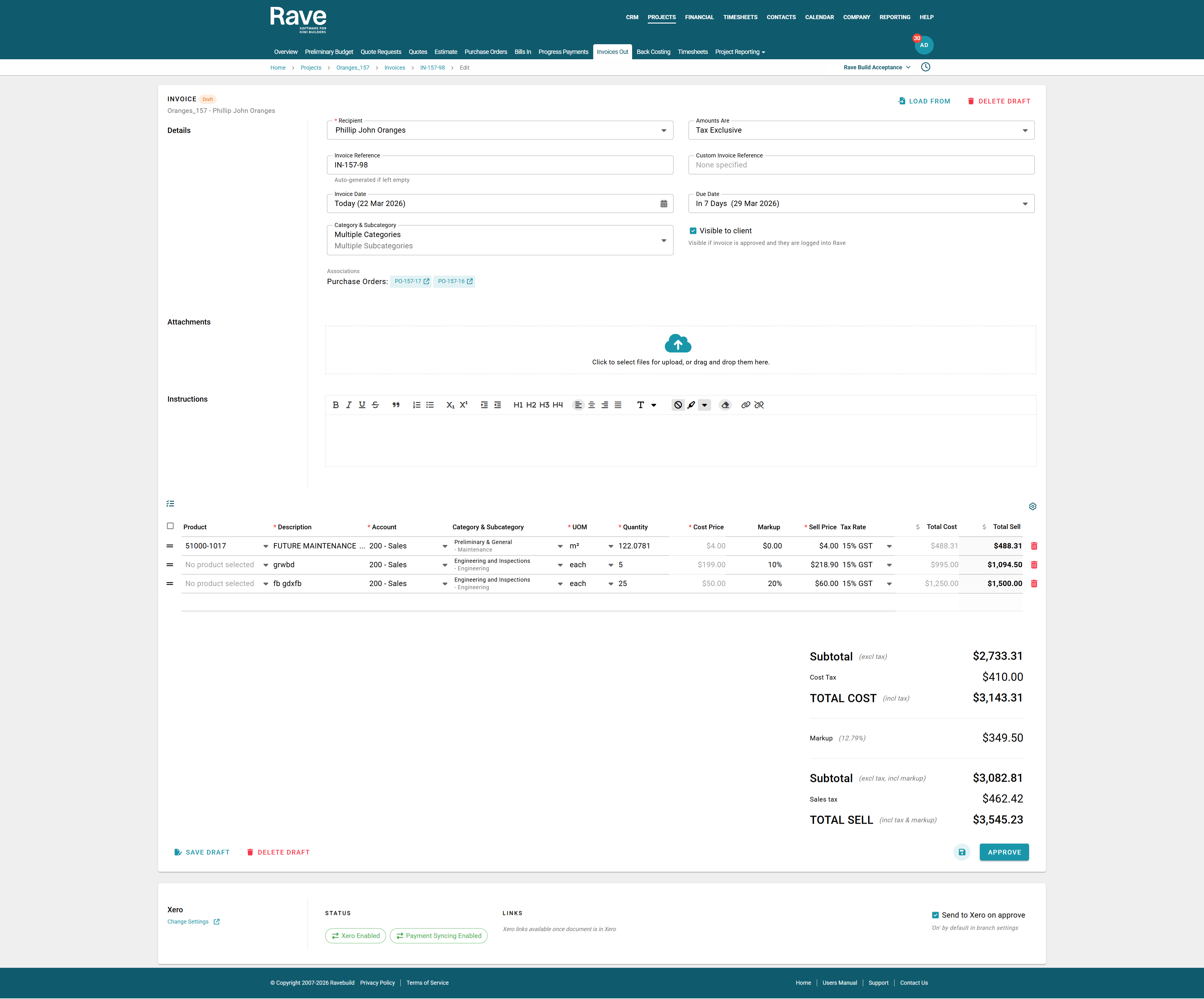 - Approve - to create the client invoice, notify accounts, and push a draft to Xero - if you have Xero connected. - You will then be taken back to your Invoices Out sub-tab, with your newly created Client Invoice listed.