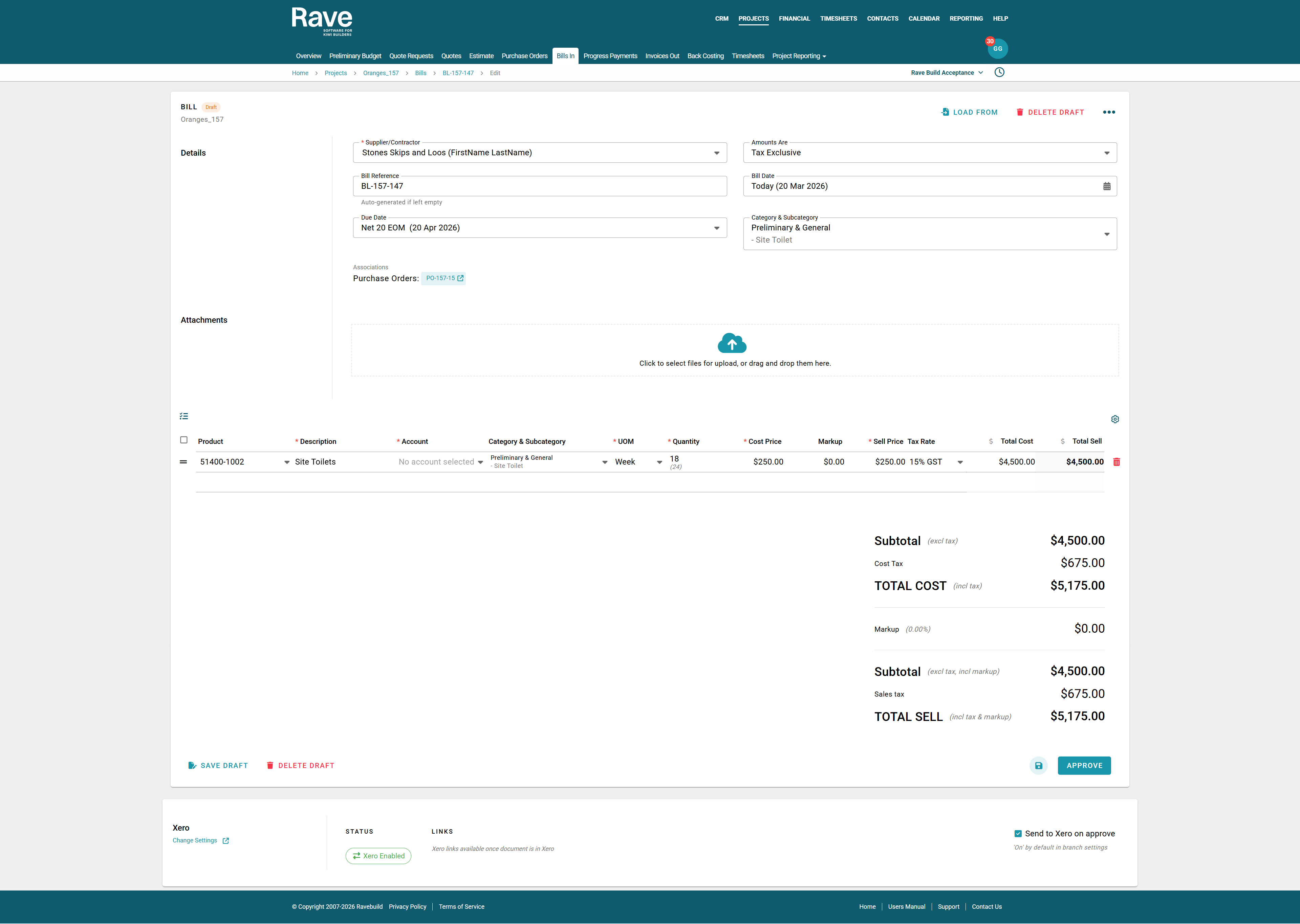 - In the example below, our original Purchase Order amount was for 24 weeks of Site Toilet Hire, and we have previously loaded a bill or bills for 6 weeks, leaving a balance of 18 weeks to be billed.
