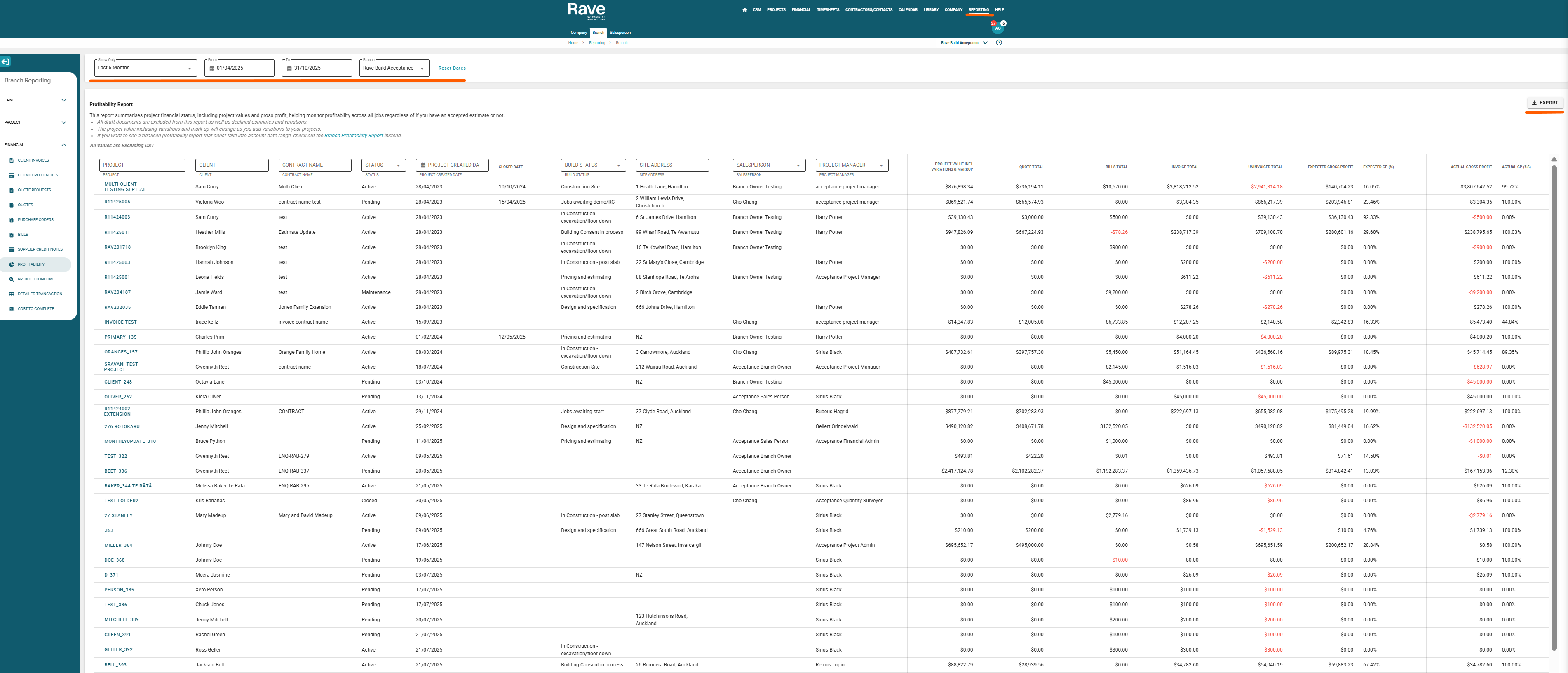 This report provides valuable insight into how each project contributes to your overall branch profitability, supporting better financial oversight and decision-making.