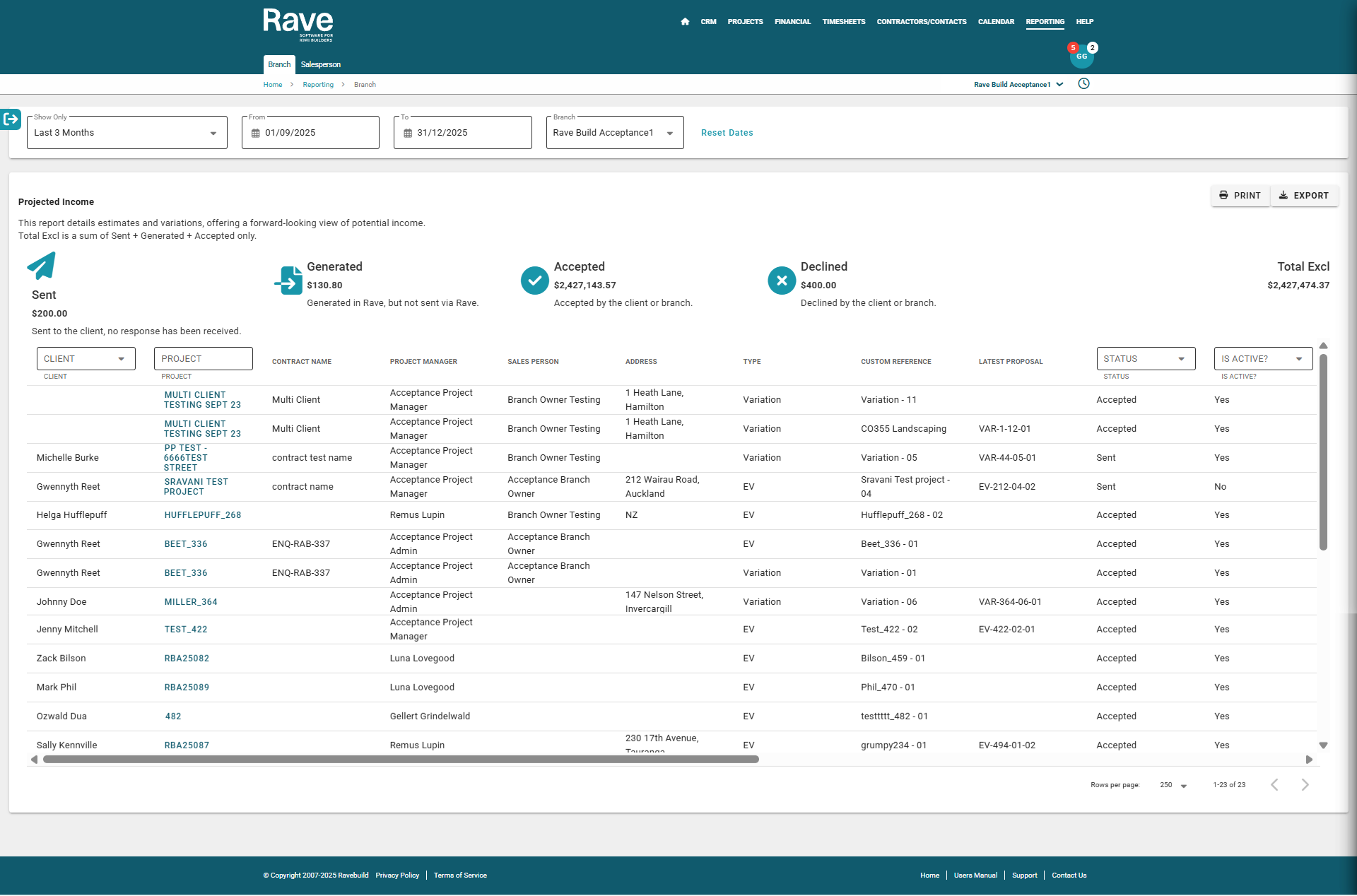 The Projected Income Report provides you with a forward-looking view of potential income. This report details estimates and variations within the selected date range.