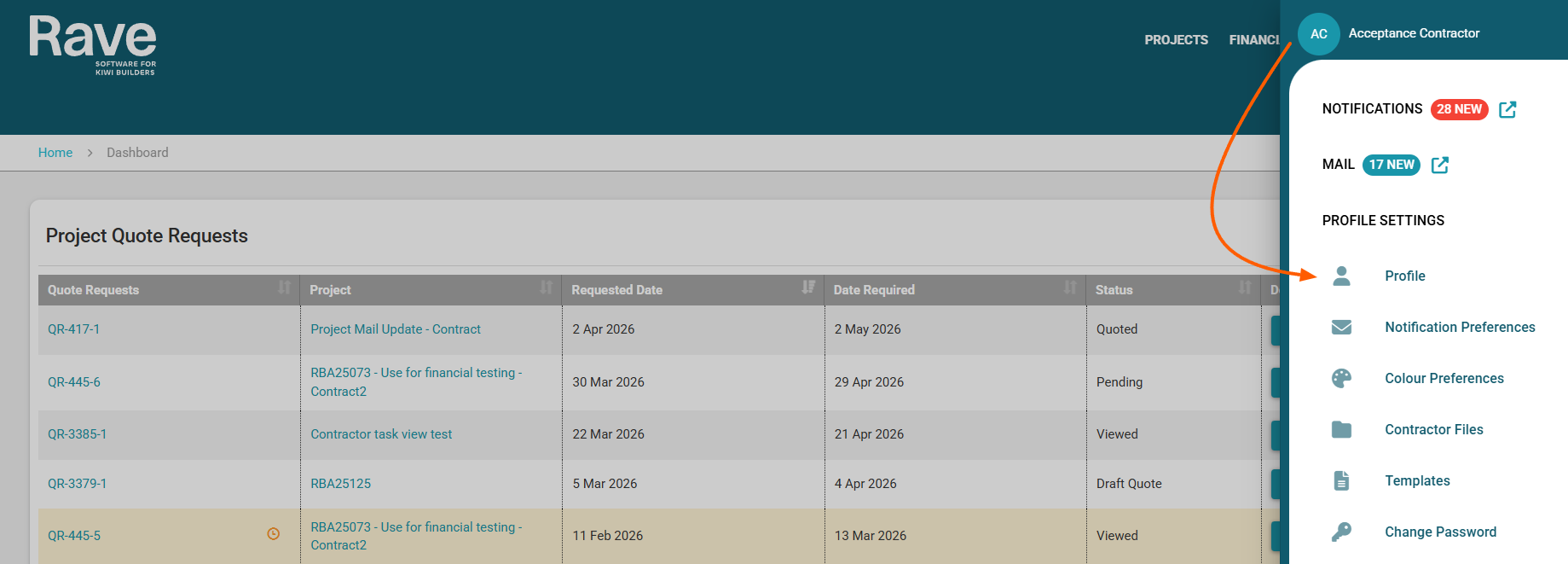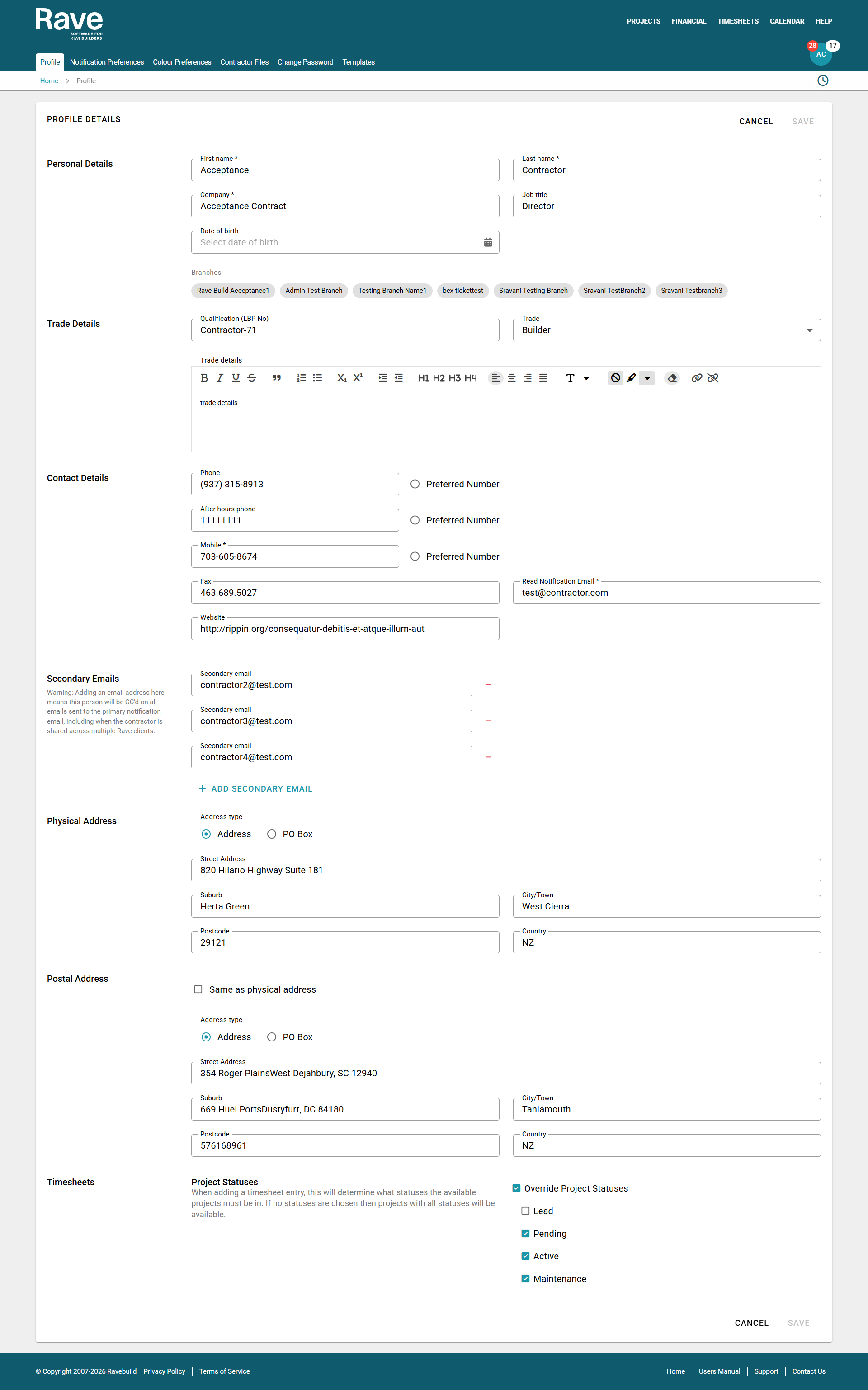 If you are a Rave Build Office Staff, Timesheet or Site Manager/Site Staff your Profile overview on your Profile can be found here.