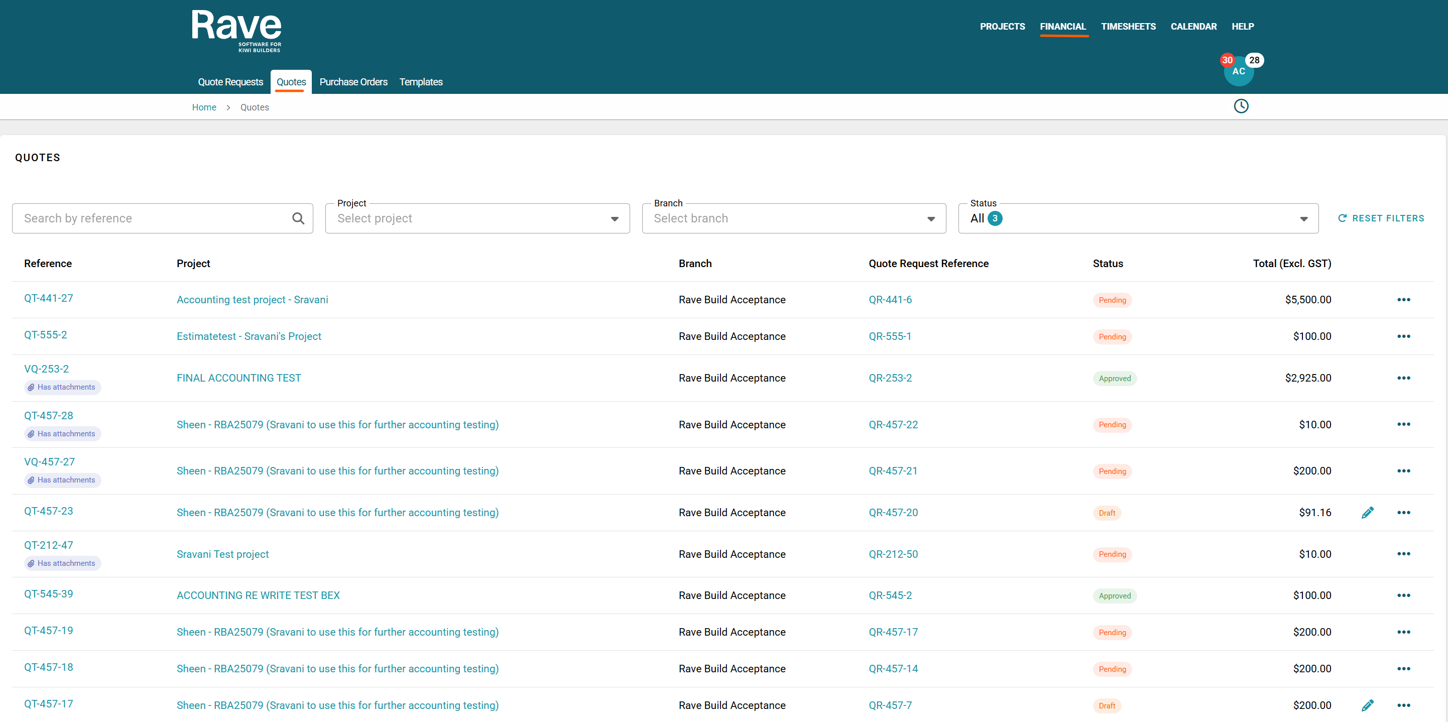 Your Building Partner may provide you with access to the Quote Request feature in Rave as part of this you will have a Quotes page.