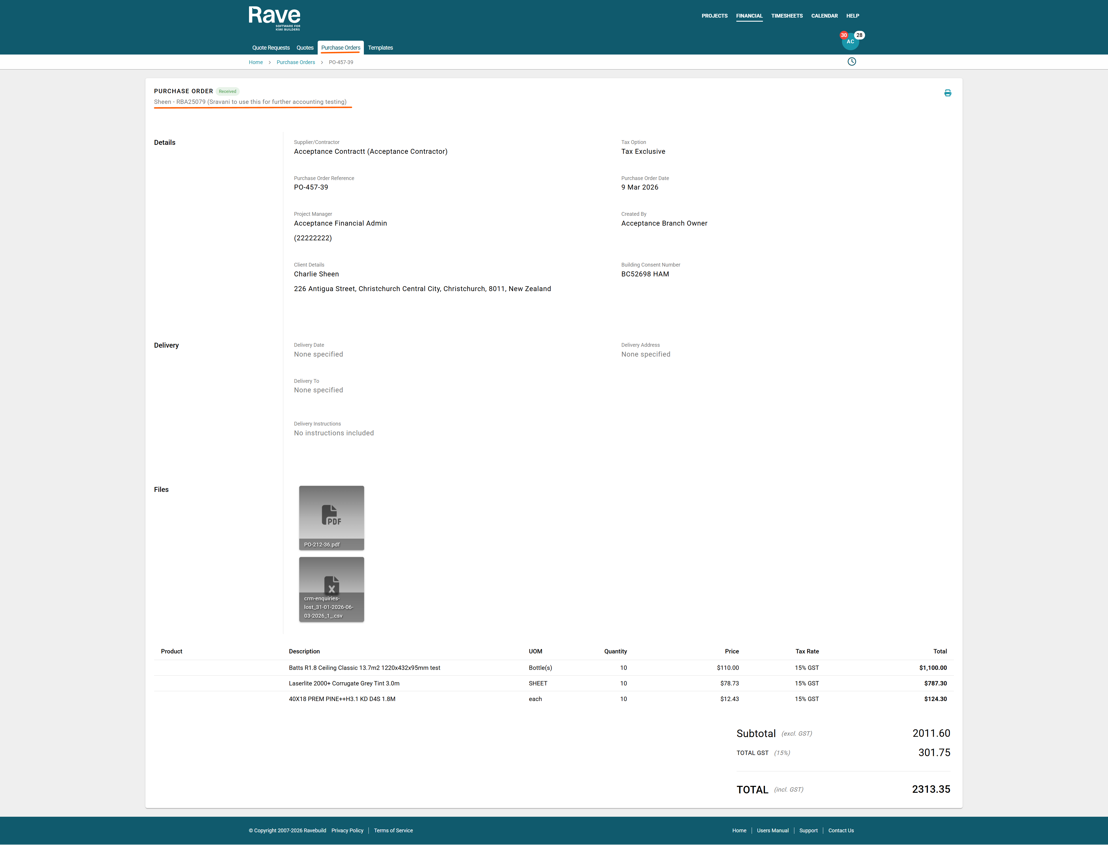 Your Building Partner may provide you with access to the Purchase Orders feature in Rave.