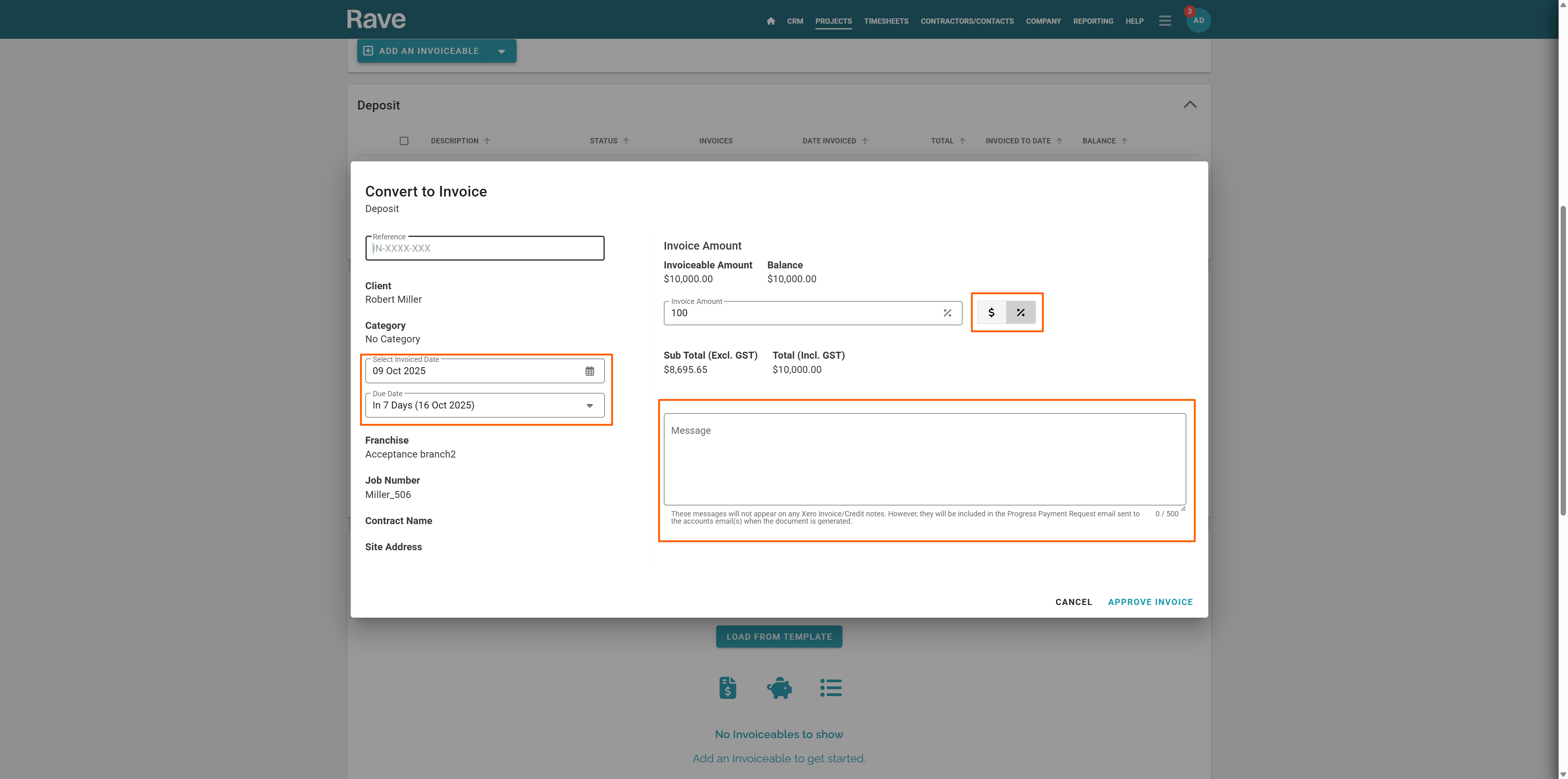 Once you've made your selections on the 'Convert to Invoices' pop-up, select the 'Approve Invoice' button to confirm.