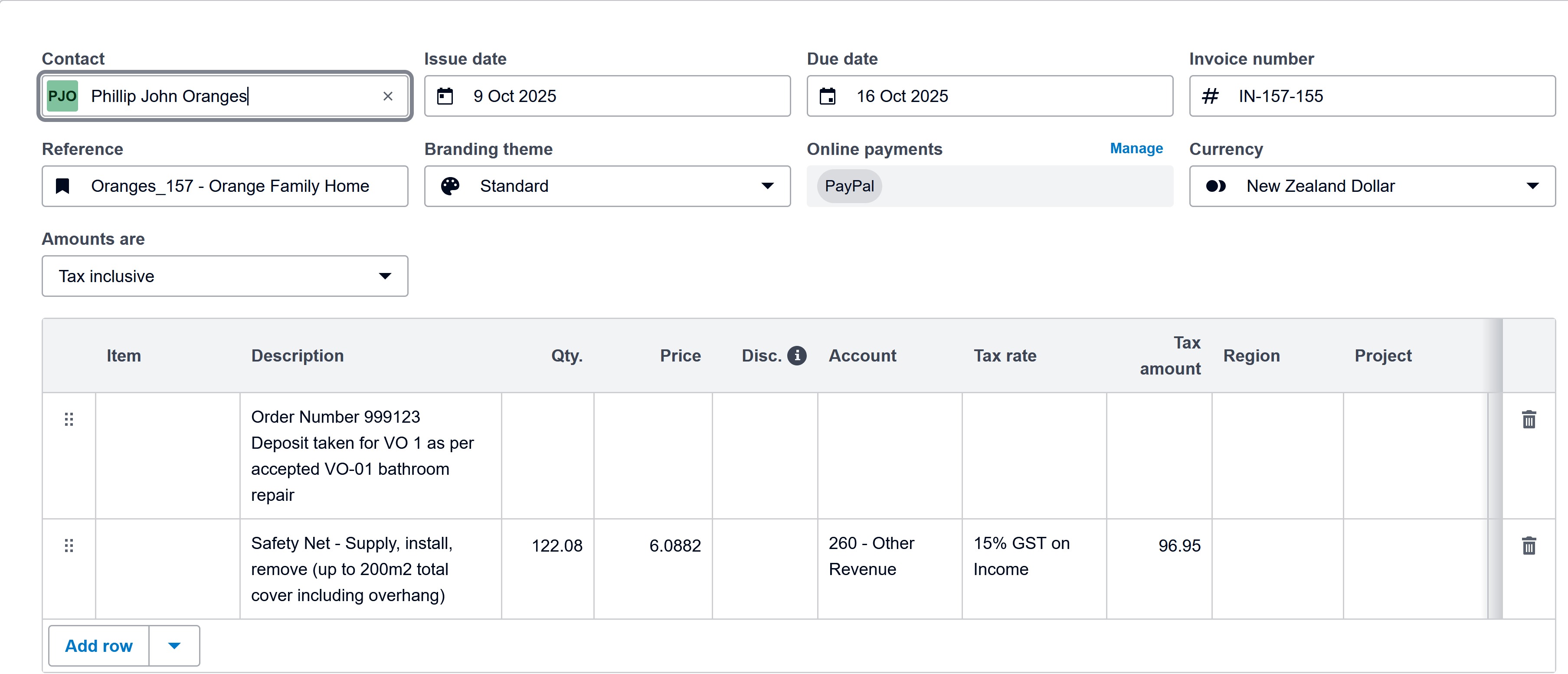 - Select an invoice reference if you want to make a custom one or leave this blank and it auto create an invoice reference for you in sequential order