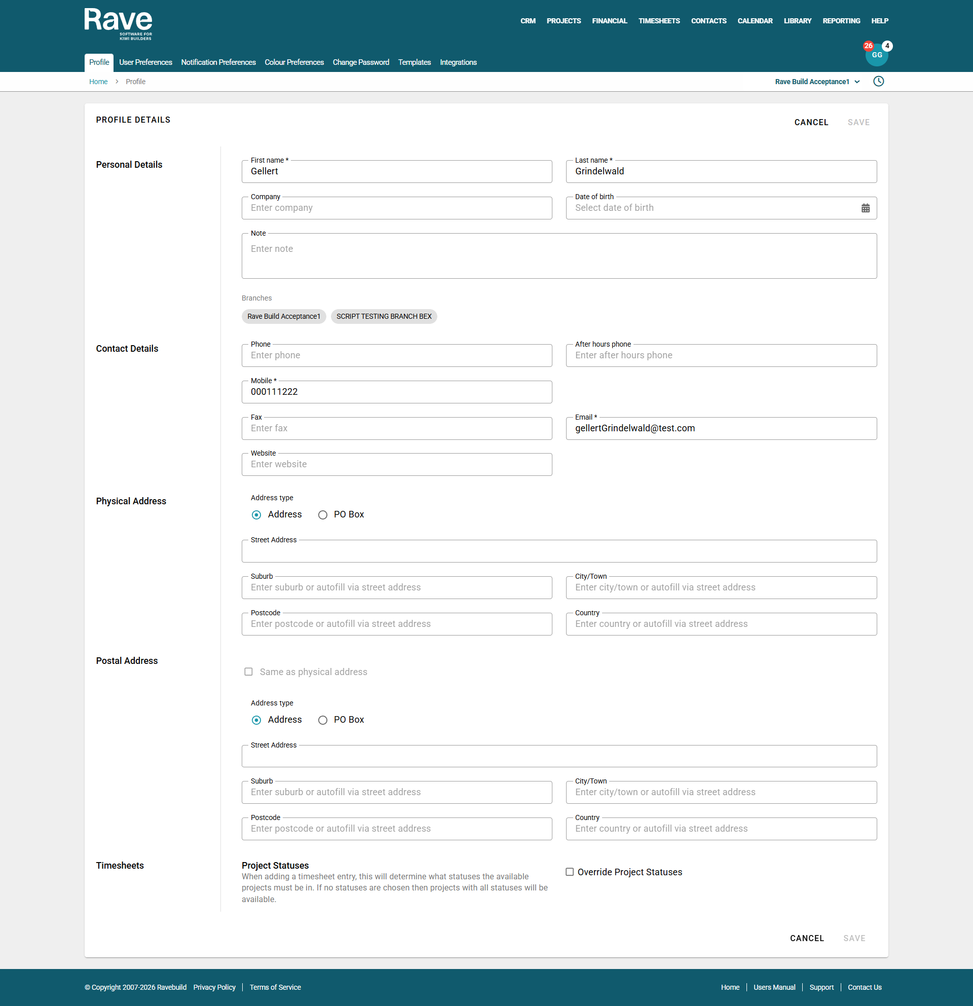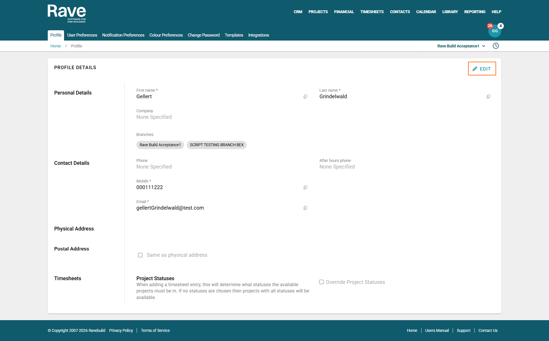 From here you can update your personal details as well as Choosing some Timesheet options (with permission)