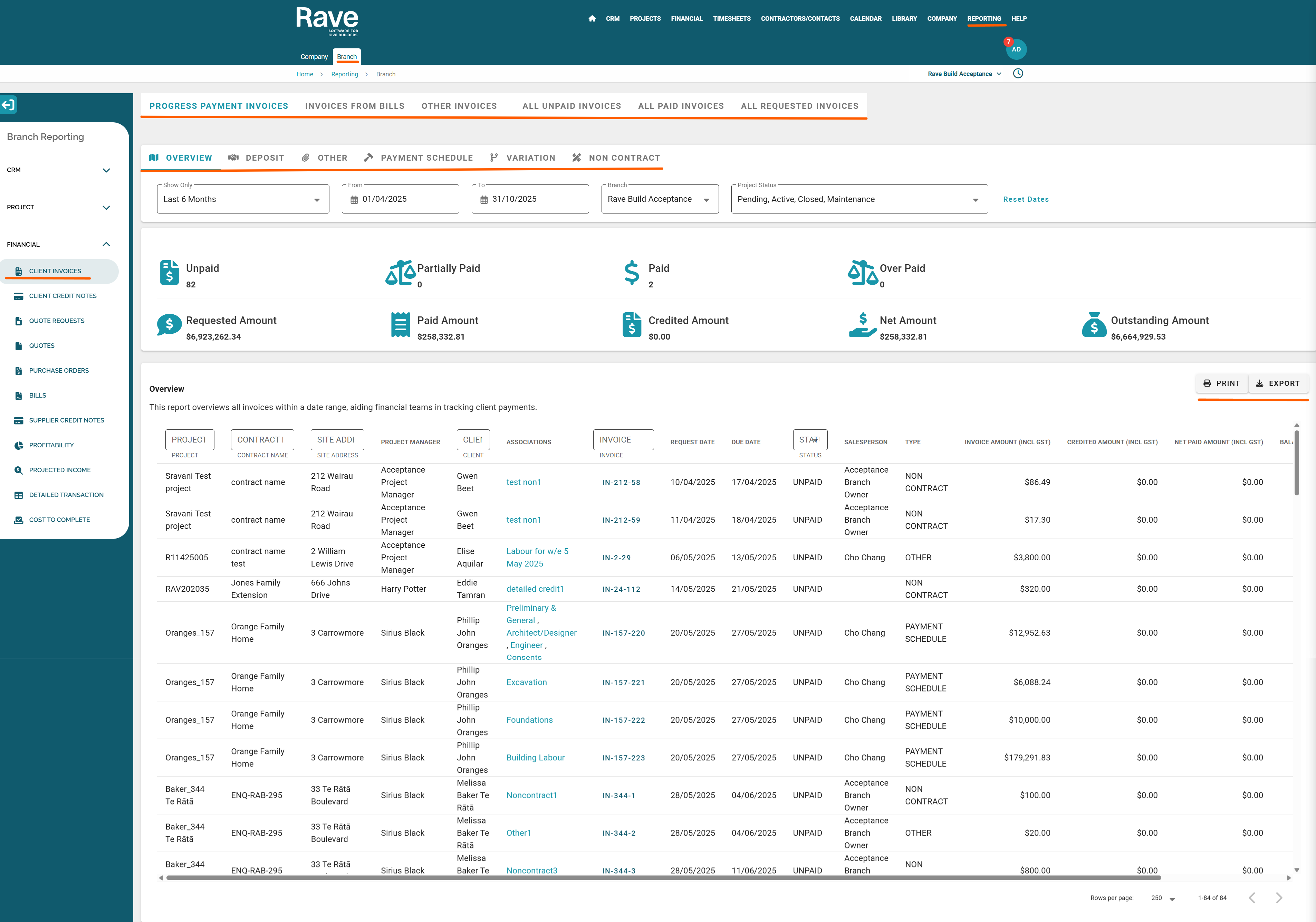 All invoices created in Rave regardless of what type they are will show here if they are requested and we also show the payment status.