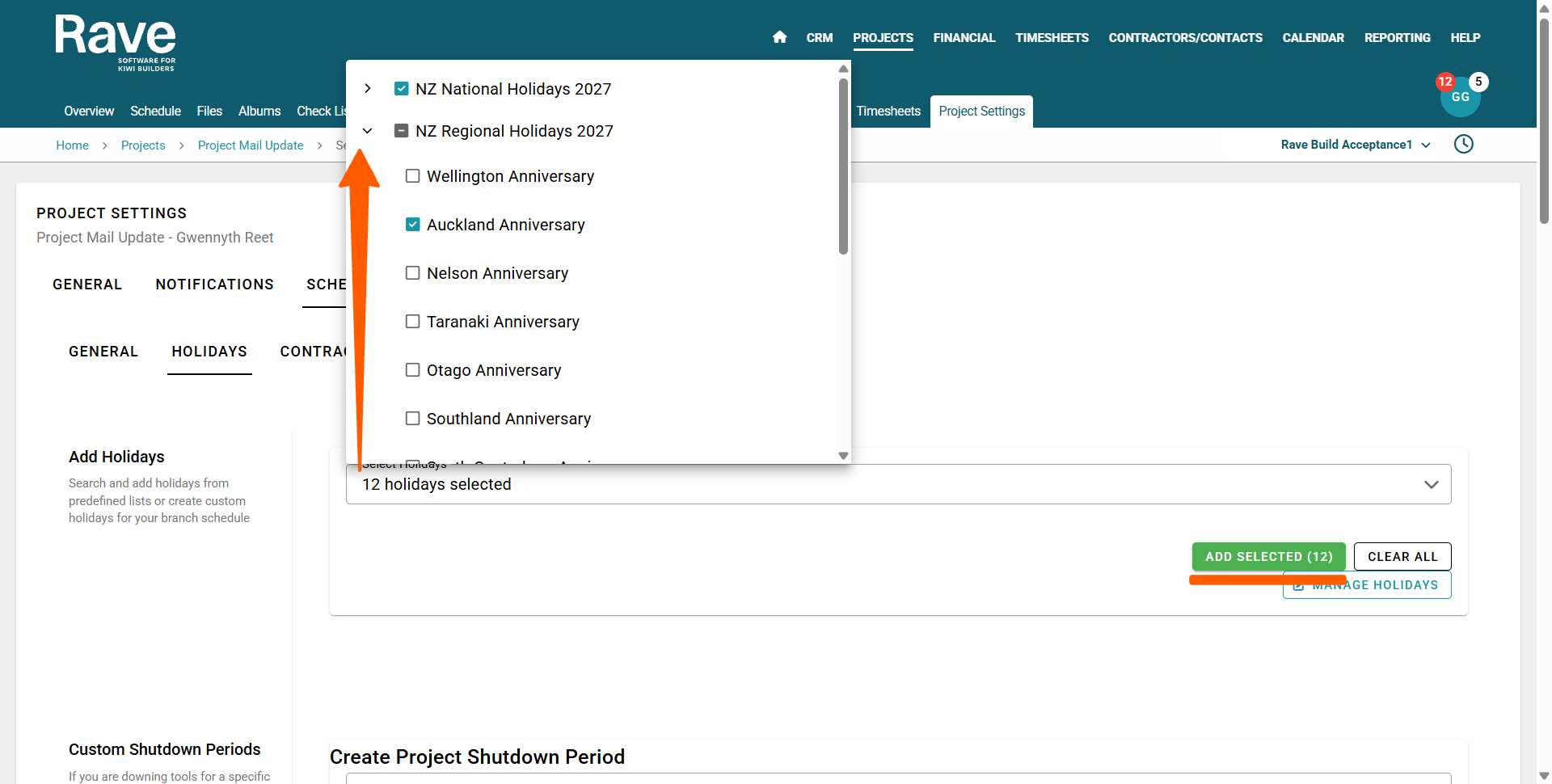 Note: It’s important to expand the listings before confirming your selection. This ensures you only select the correct (regional) holidays, rather than all regional or National holidays by accident.