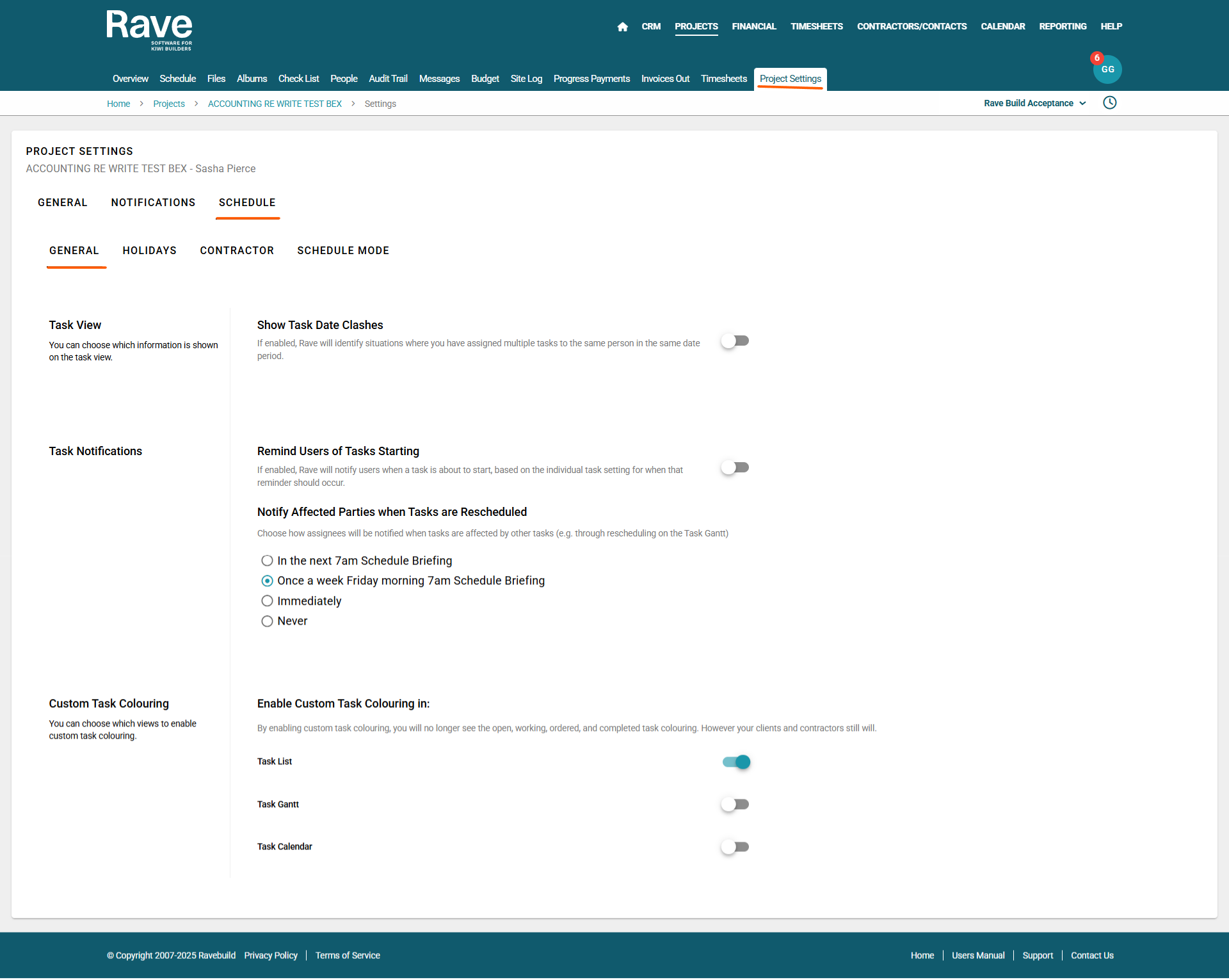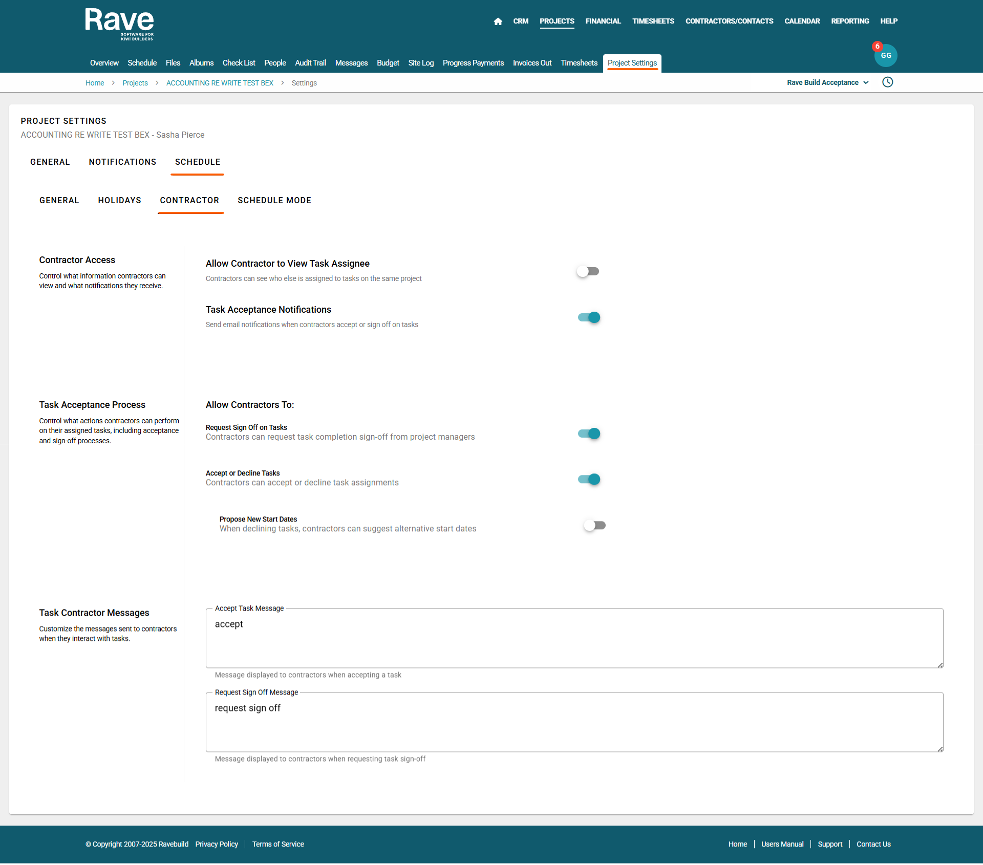 Task Acceptance Notifications - Once enabled Rave will send email notifications when contractors accept or sign off on tasks