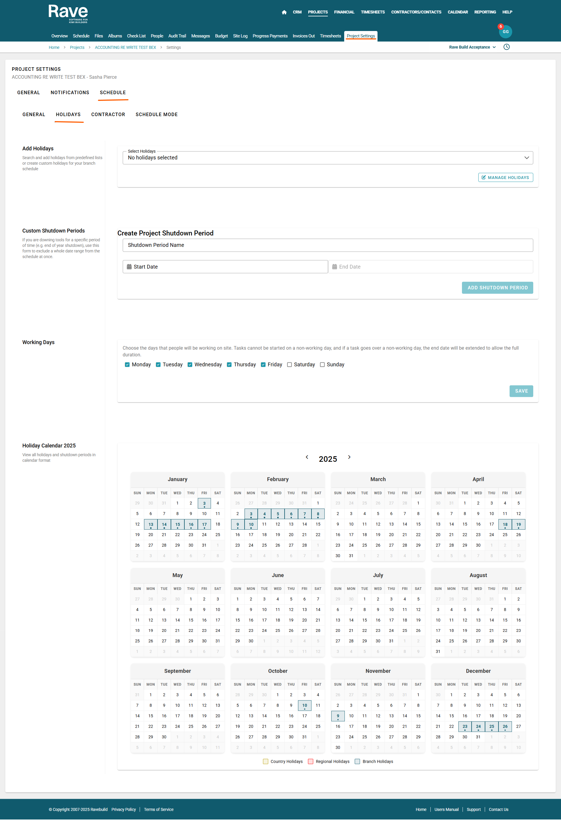 Select the Check Box next to the days you wish to be available to use across your Project Schedules and press Save.