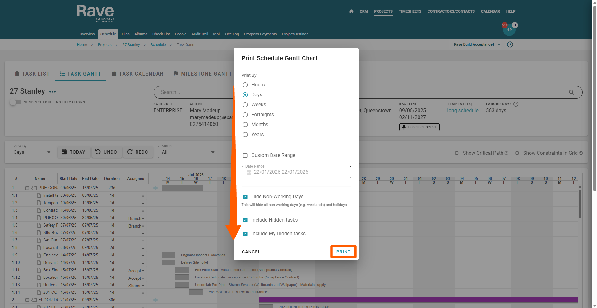 This will open the 'Print Schedule' pop-up, from here, you can