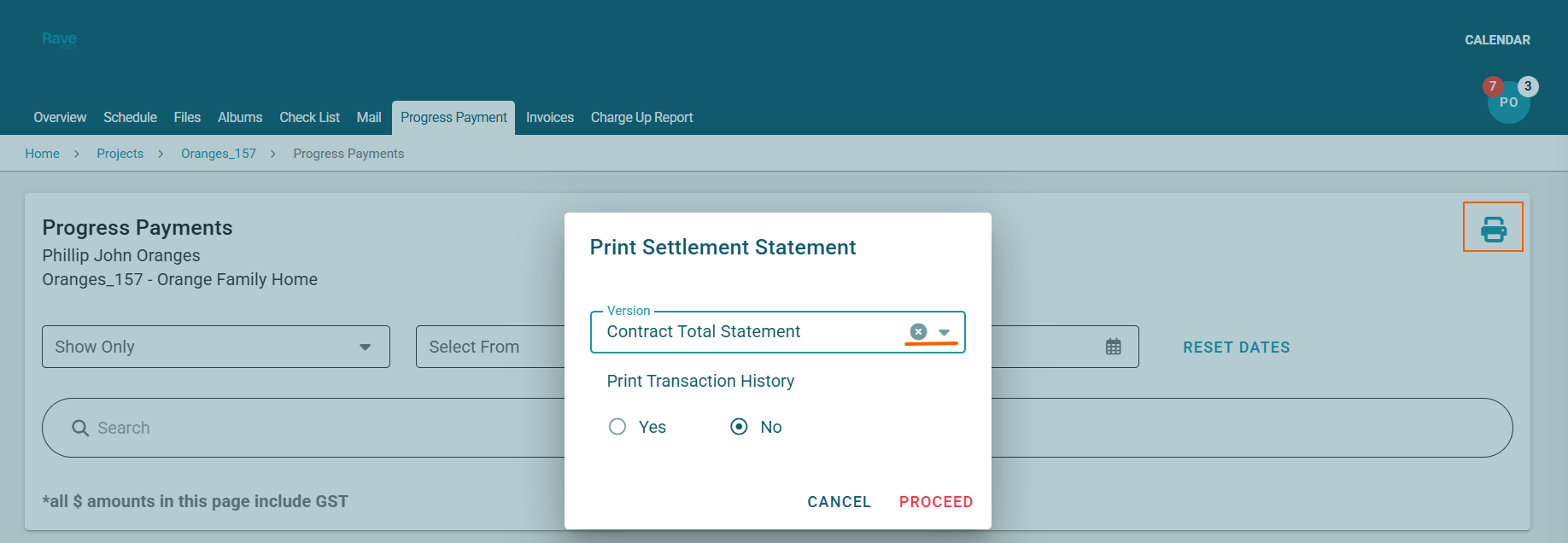 You can also choose to print your Transaction History, which shows all payments allocated to your project invoices/credit notes.