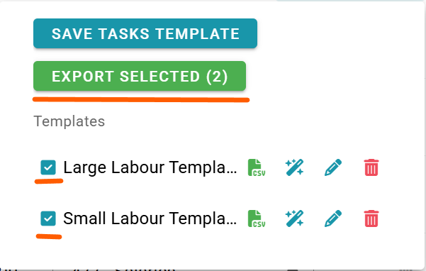 To export multiple templates into a single CSV file, select the desired templates and click Export Selected.