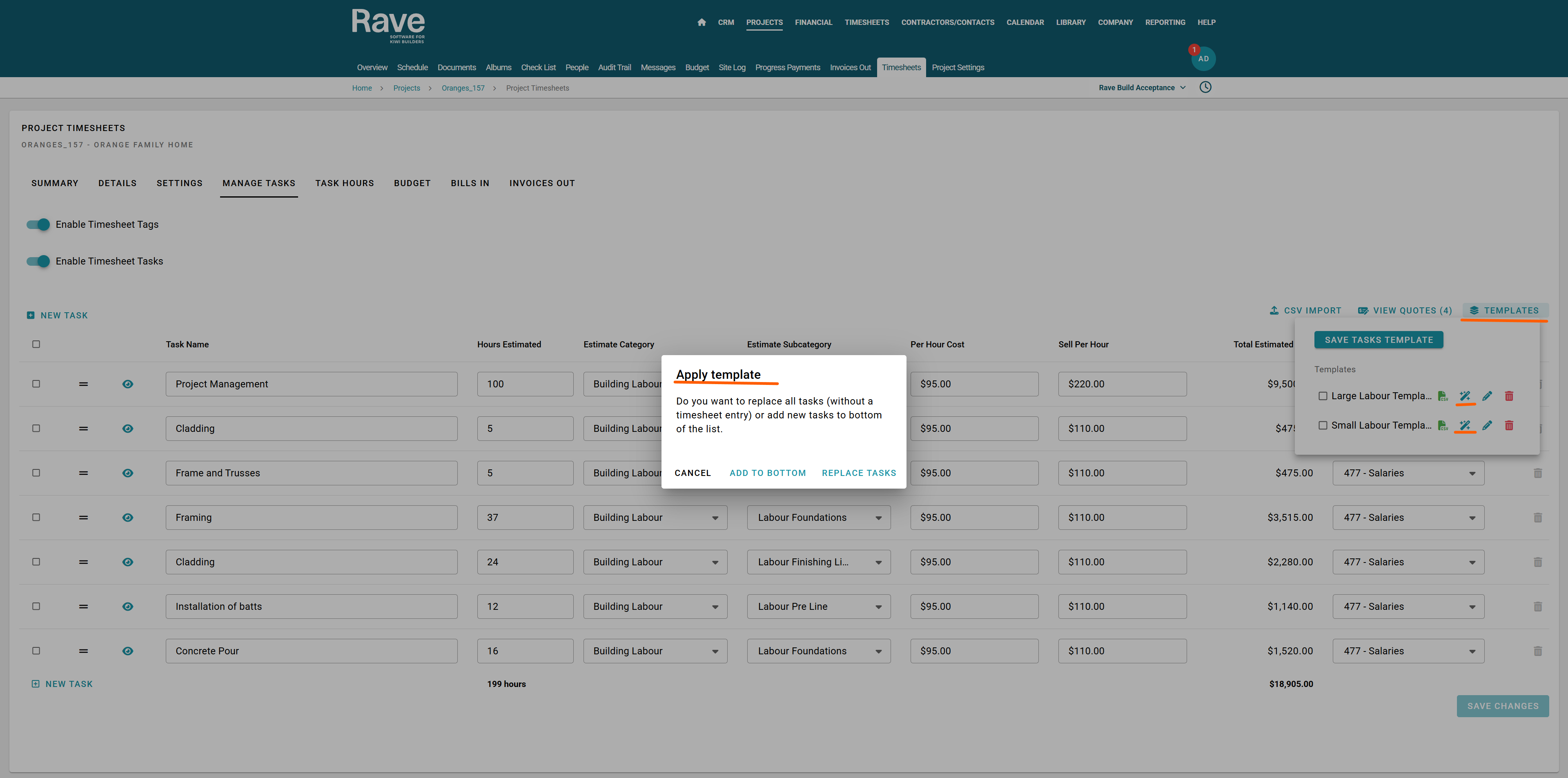 If you would like to add the Advanced Timesheets module to your Rave set-up, please contact us via help@ravebuild.co.nz