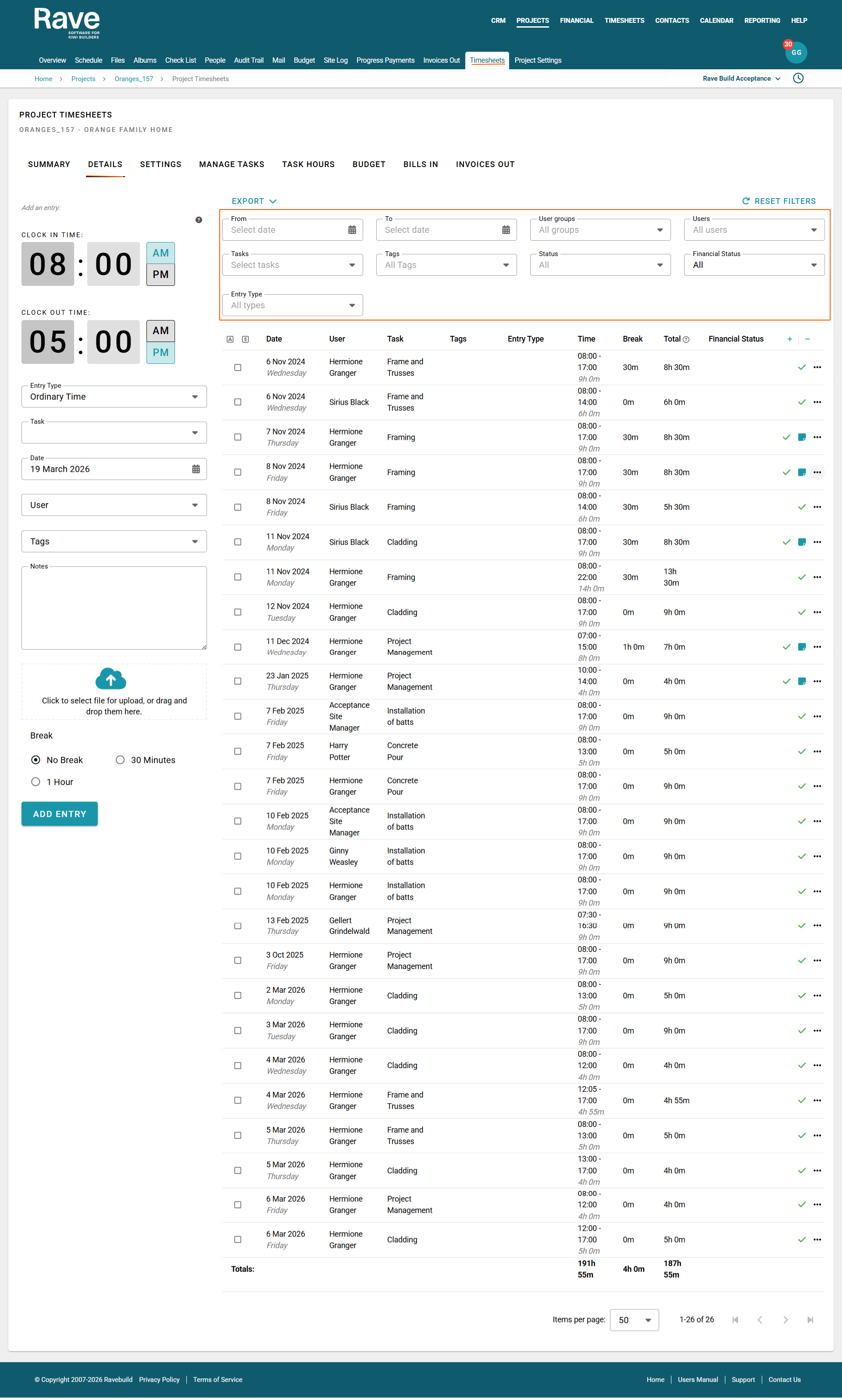 If you would like to add the Advanced Timesheets module on to your Rave set-up, please contact us via help@ravebuild.co.nz