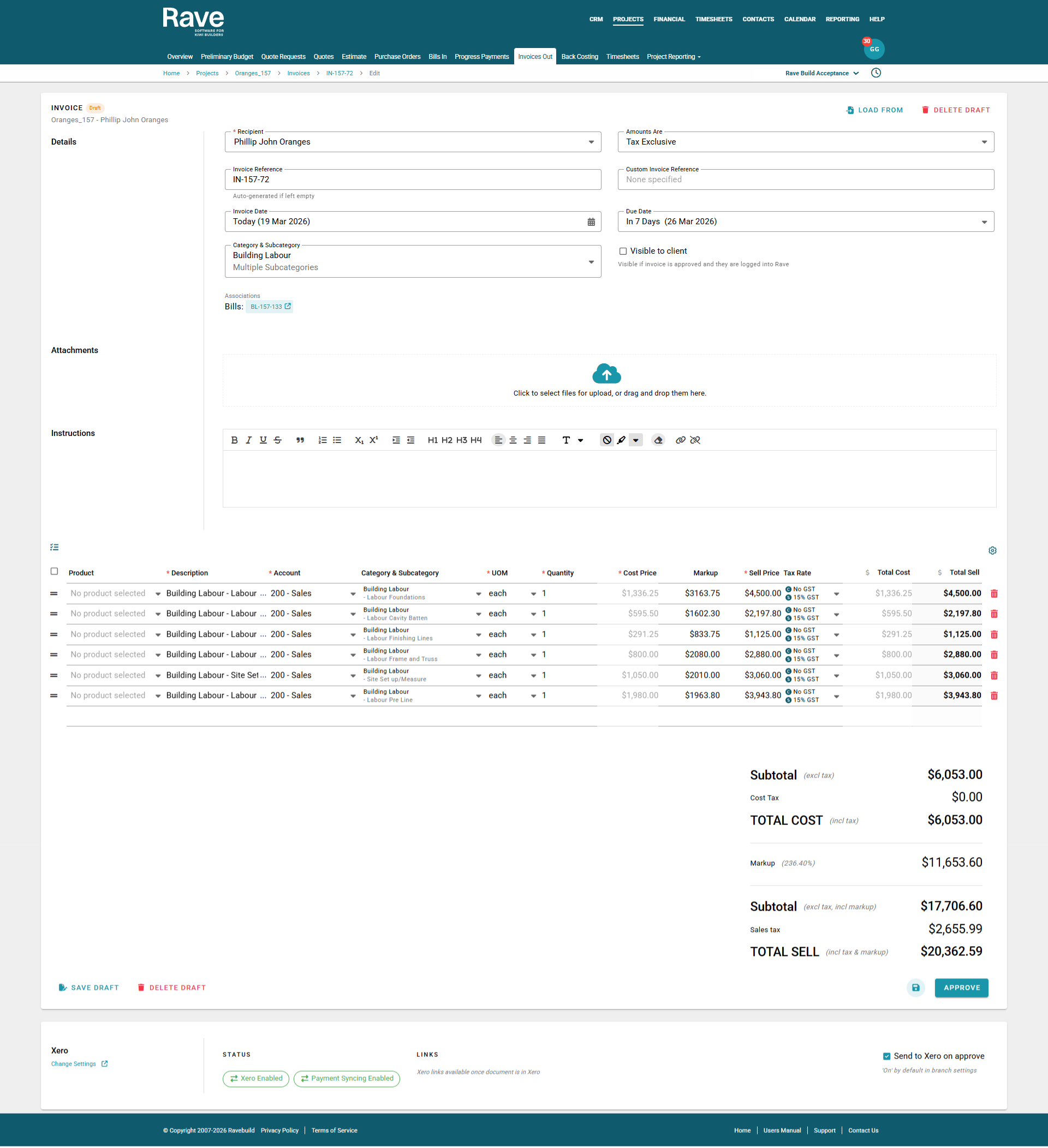 Once ready, you can Approve which will send the invocie to xero if connected.