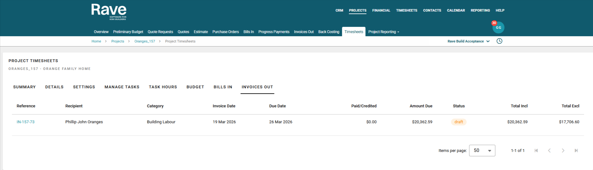 Once you’ve billed the timesheet entries, you can generate a client invoice directly from the Labour Bill in the timesheets model.
