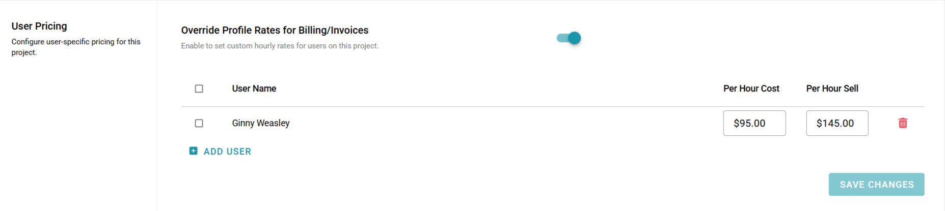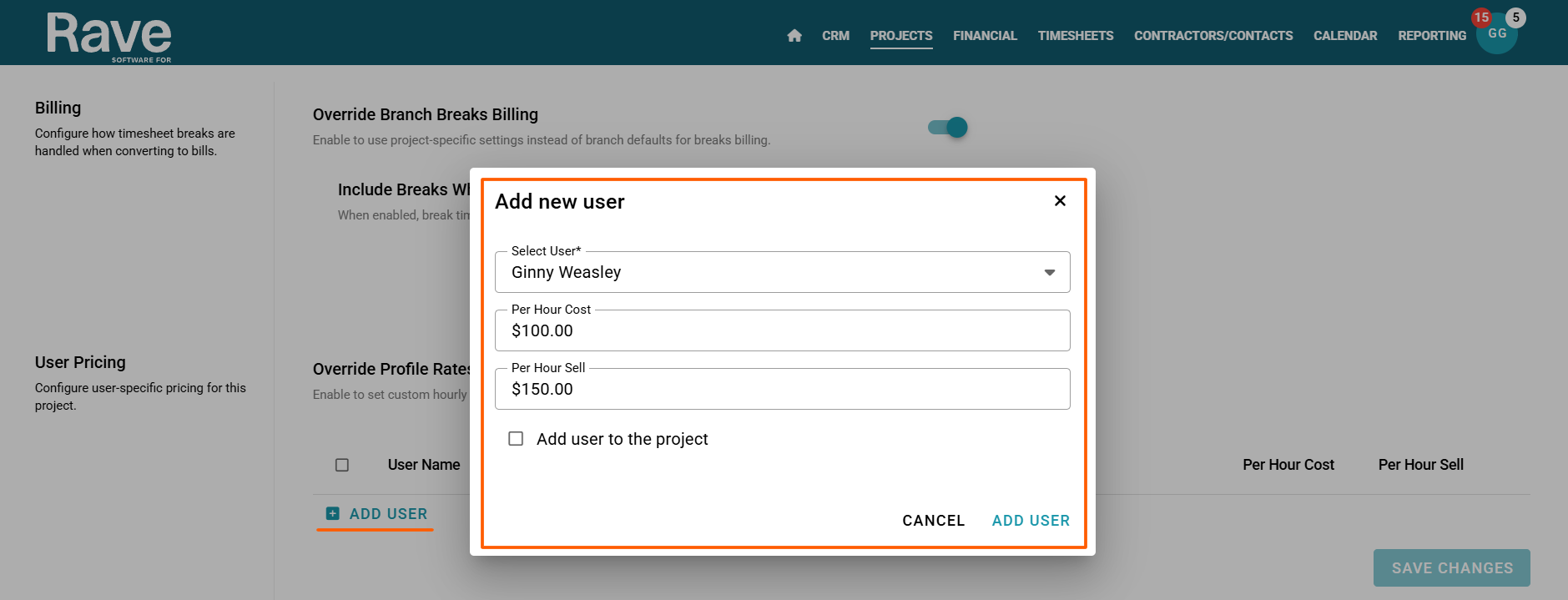 How to Set a User’s Project-Specific Cost and Sell Price