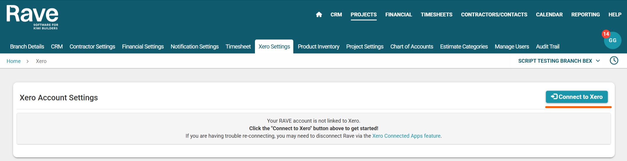 Ensure your Progress Payment Chart of Account in RAVE is matched to your income code in Xero.