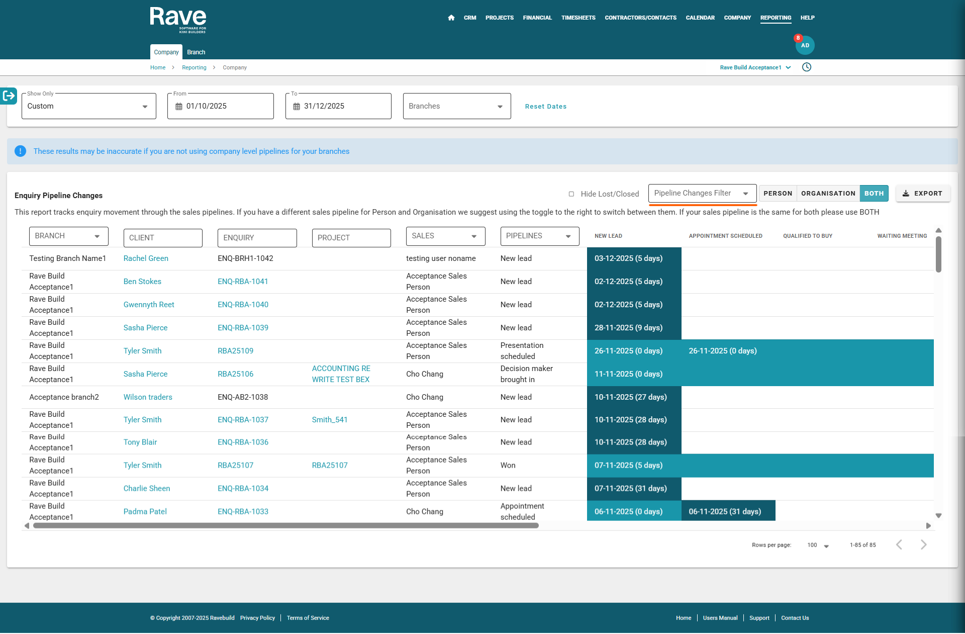 We have added a pipeline changes filter to the top right of the screen. This update will show pipeline changes in the date range selected. We have added a pipeline changes filter on both company and branch reports