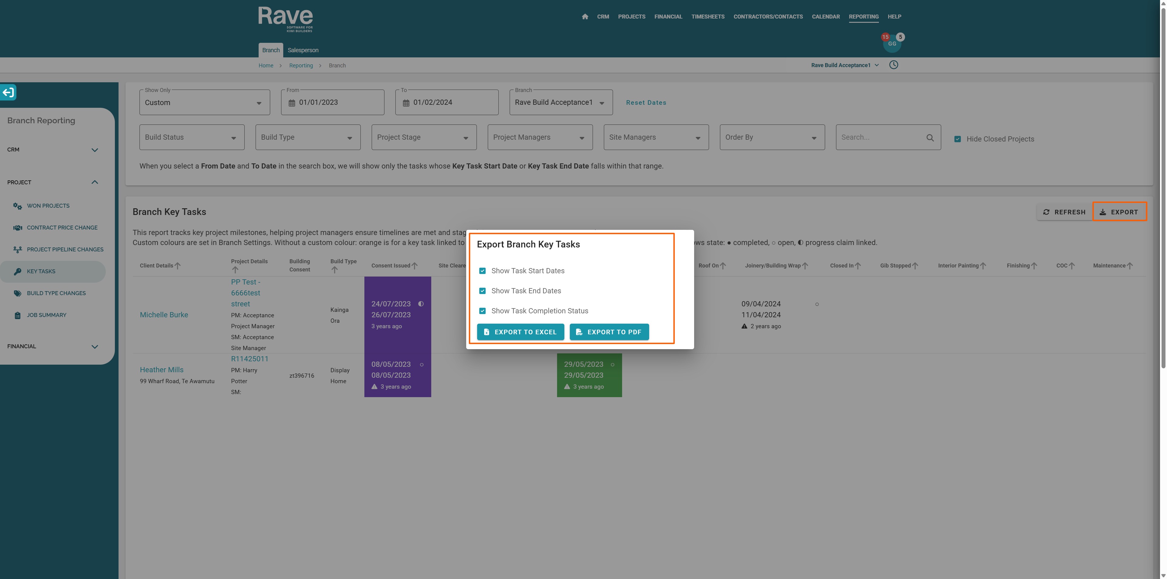 Date Range: View Key Tasks due within a specific date range.