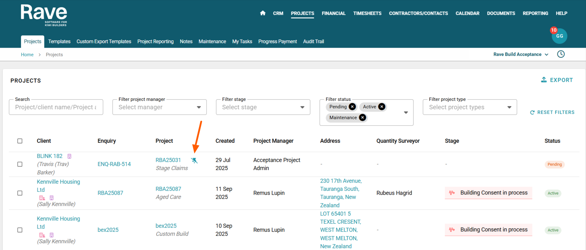 Being able to "Pin your Project' to the first page of your Projects Tab is a useful feature that allows you to locate your Projects quickly.