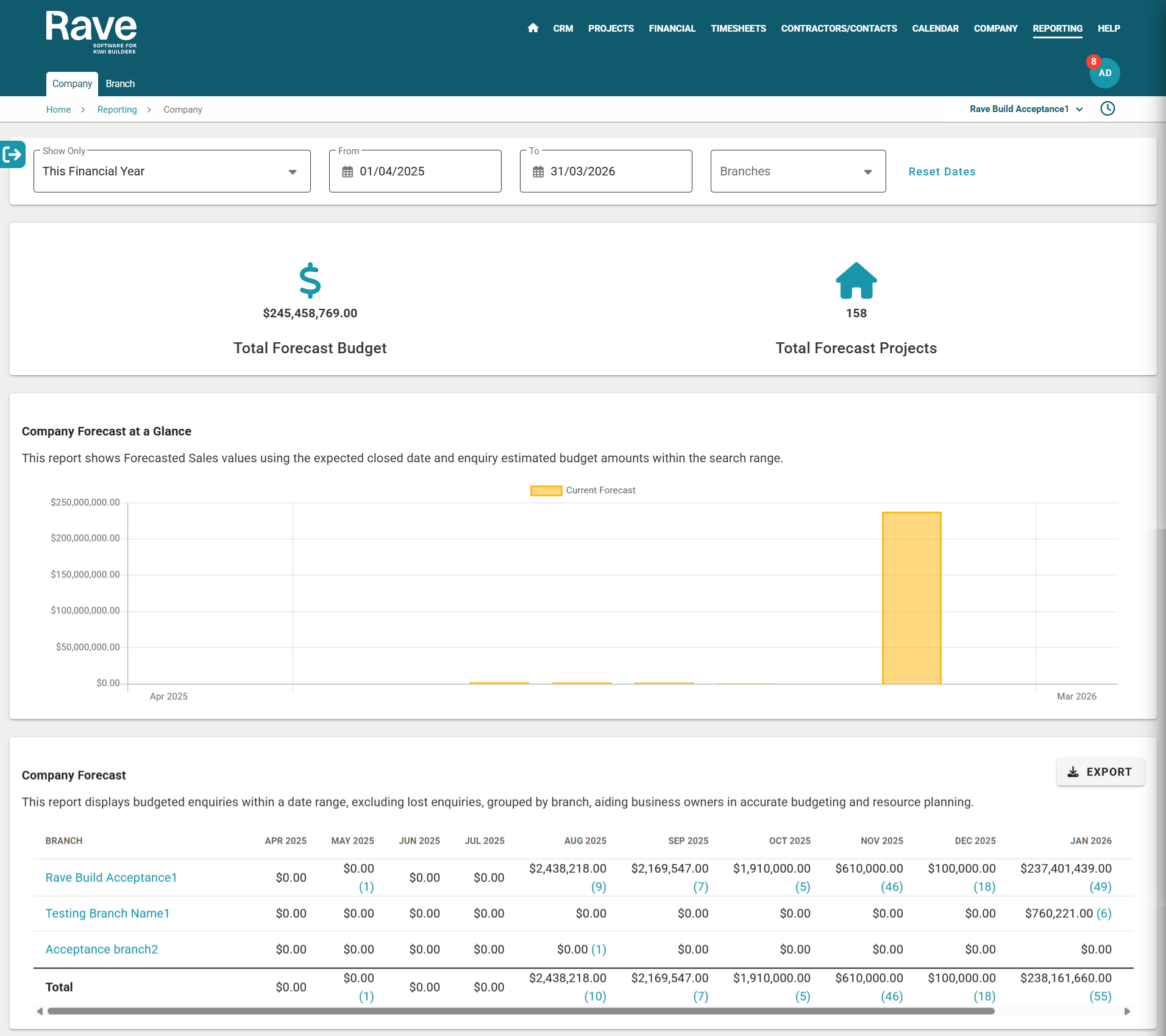 Note: Only Head Office staff or users with multiple Rave accounts will have access to Company-level reports, which combine reporting across all branches.