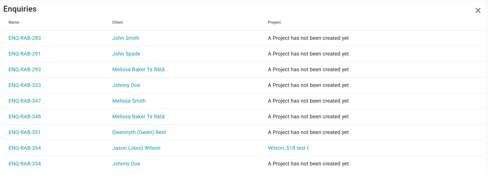 You can click on the blue hyperlink numbers beside each dollar amount which will give you a break down of the Enquiry Reference, Client Name and if created Project Reference. All of which are hyperlinked as well. Client Name takes you to client profile, Enquiry Reference takes you to the enquiry and the Project Reference will take you to the project overview in Rave.