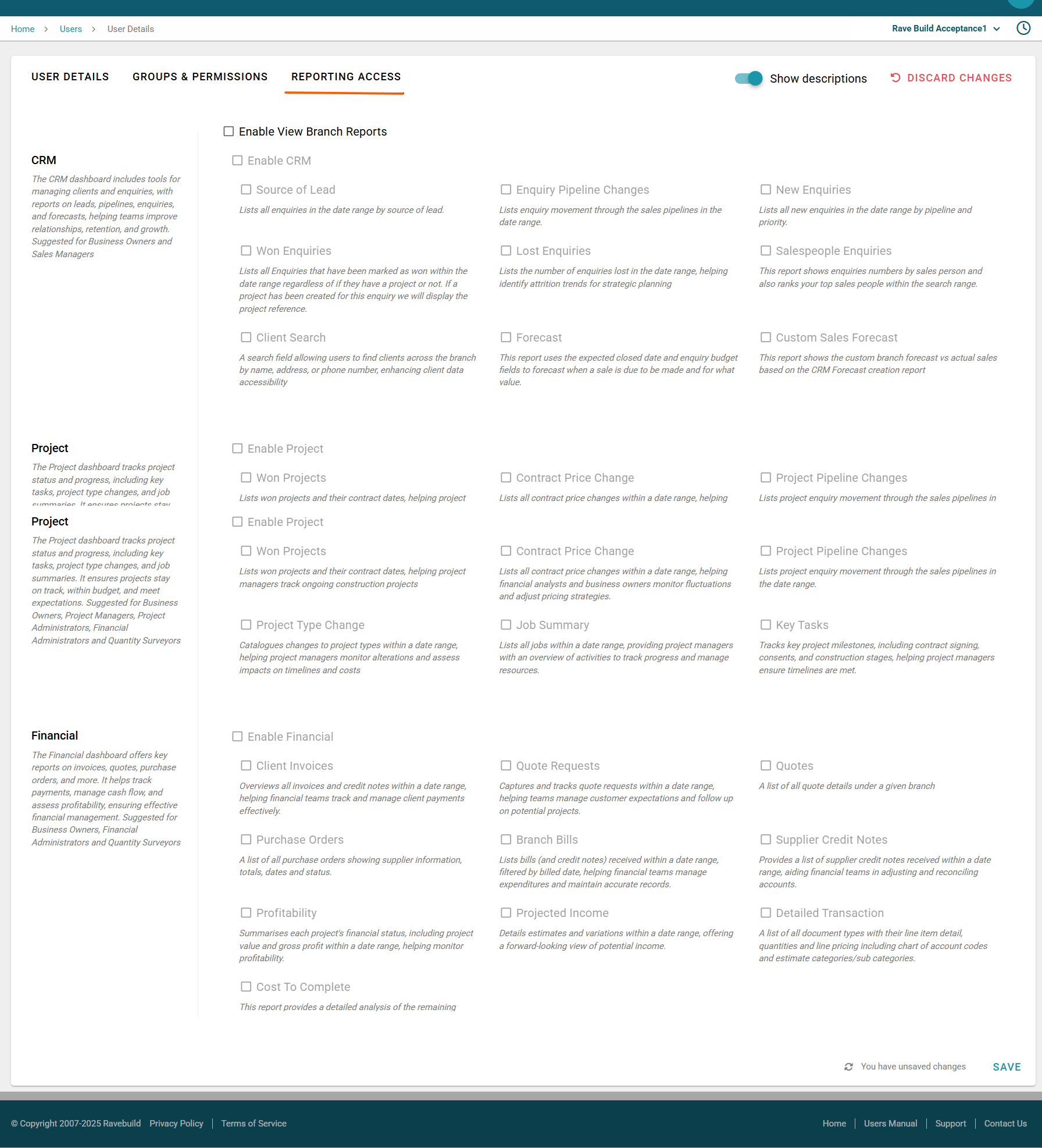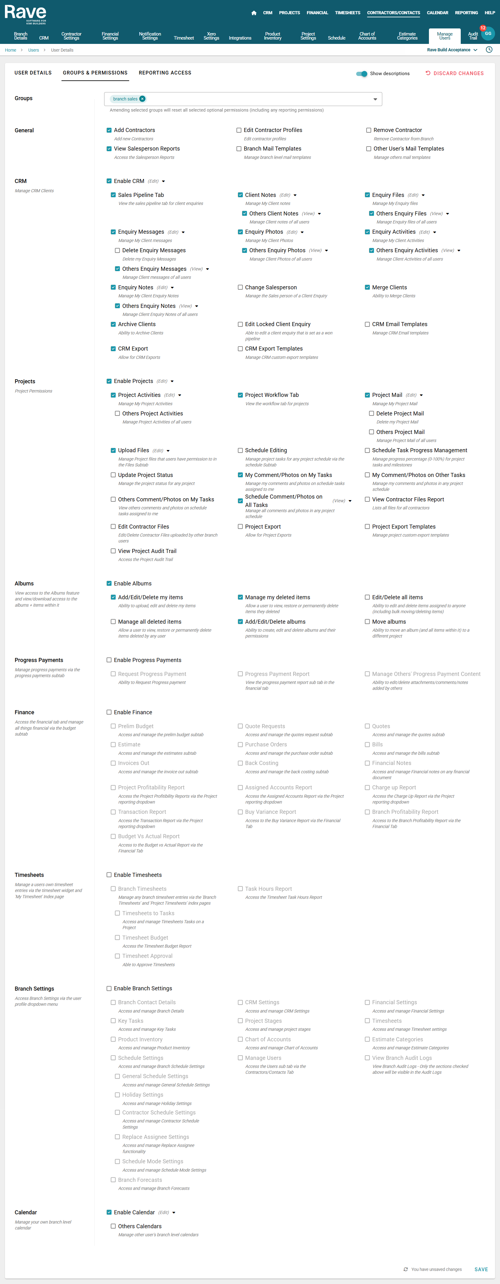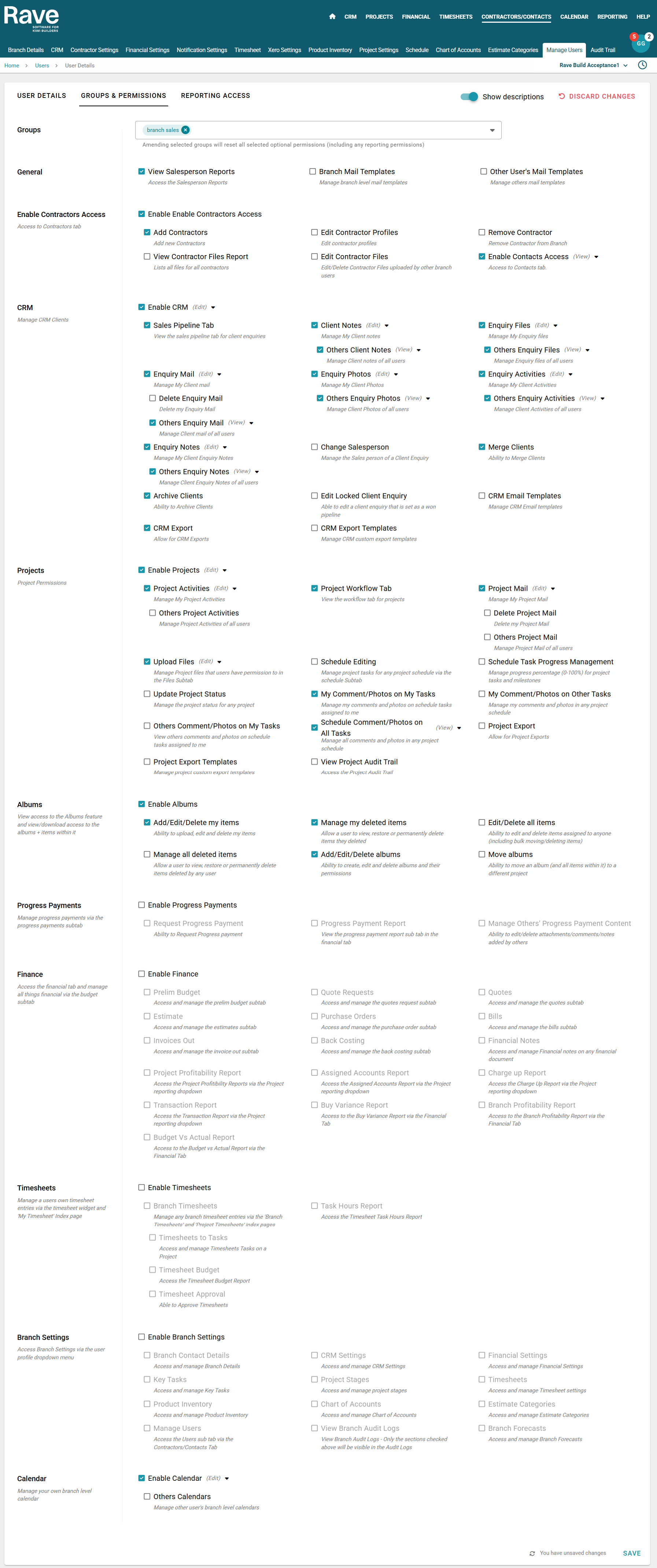At Rave Build, we know you like to have options—so we offer different user group types to suit a variety of roles within your business. These user groups give you the flexibility to control access across your team, ensuring the right people have the right tools at the right time.