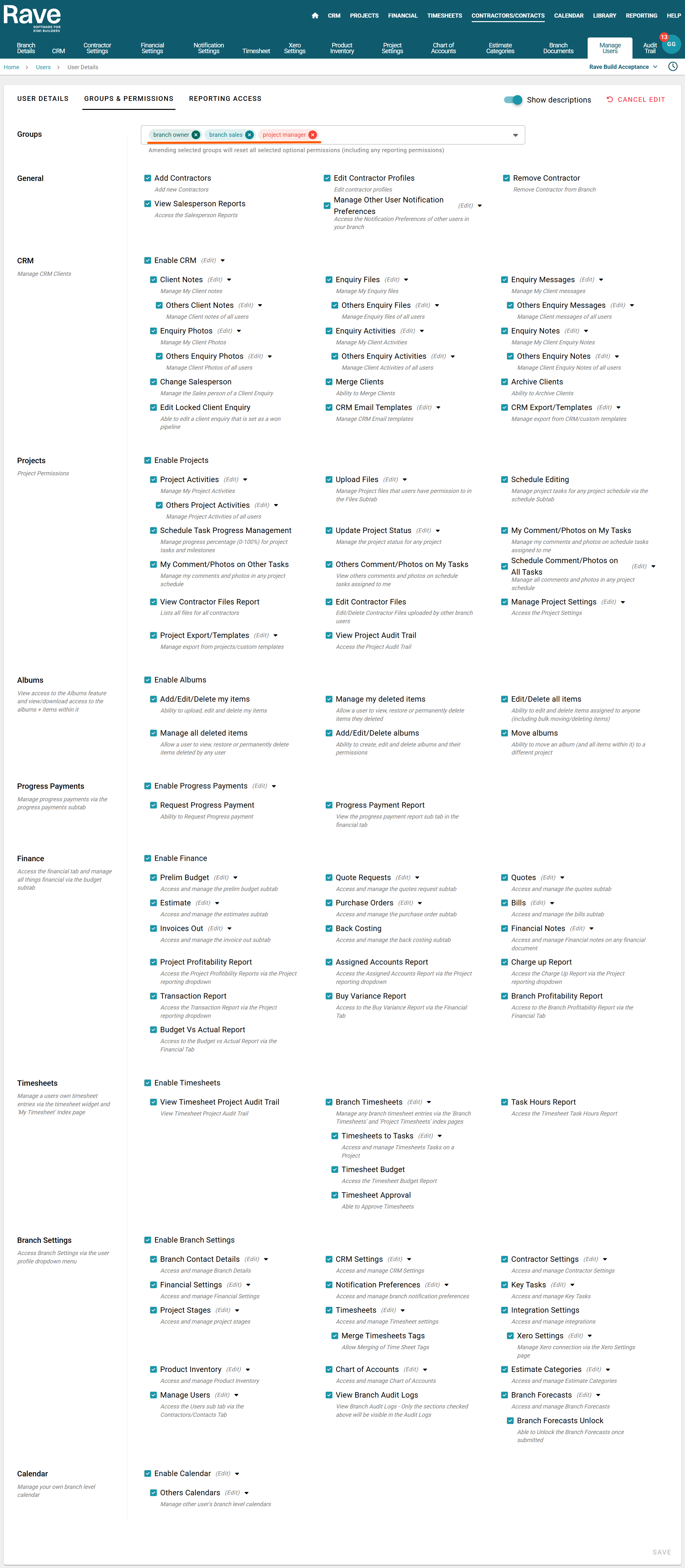 Rave Build, we know you like to have options—so we offer 9 different user group types to suit a variety of roles within your business.