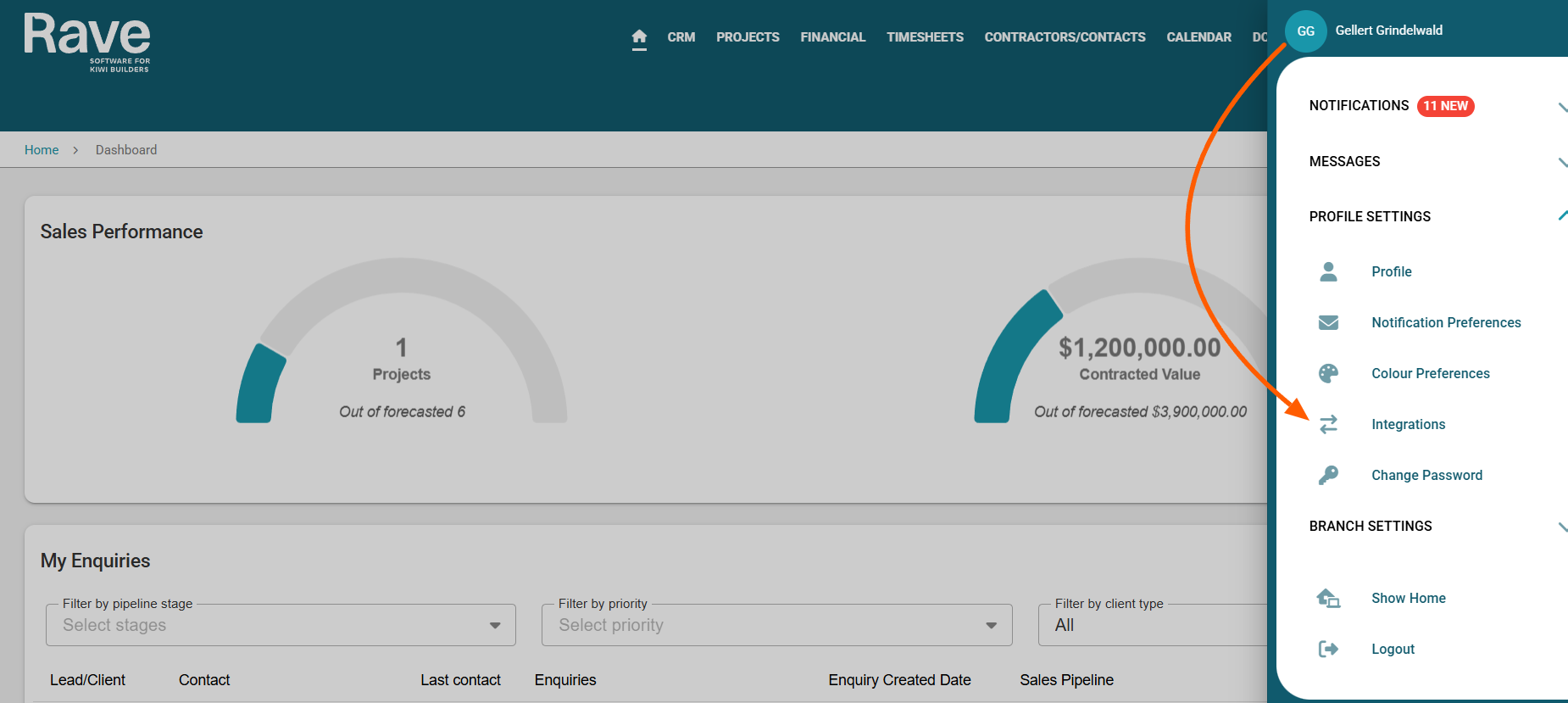 - Click on your profile dropdown in the top-right corner of the Rave screen.