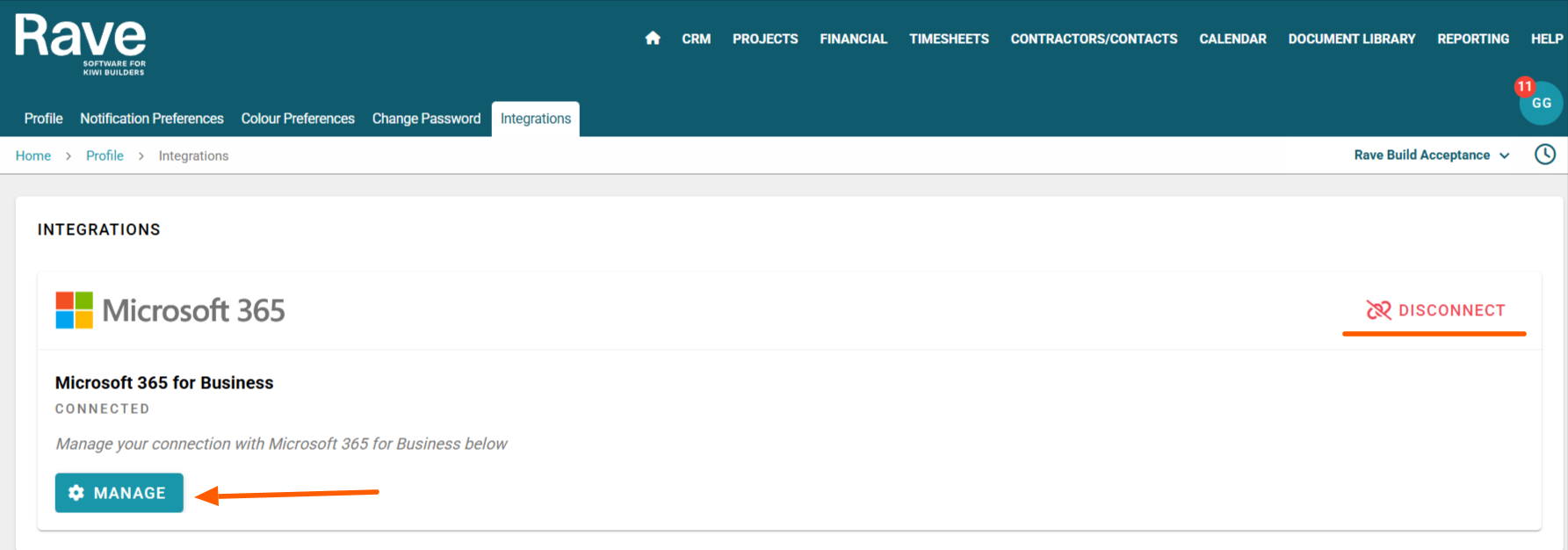 - You'll be redirected back to the integration screen. You should now see: A Disconnect option in the top right. A Manage button in the bottom left.
