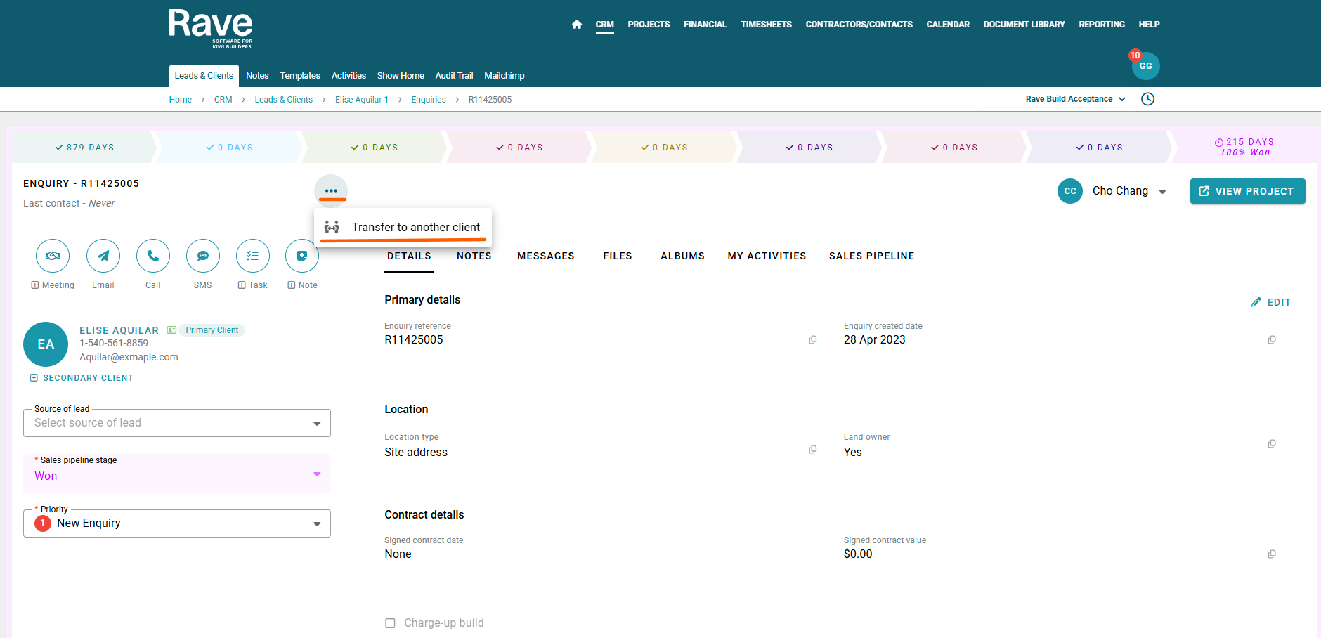 Click 'Proceed' to confirm. This will transfer both the enquiry and the associated project to the selected client.
