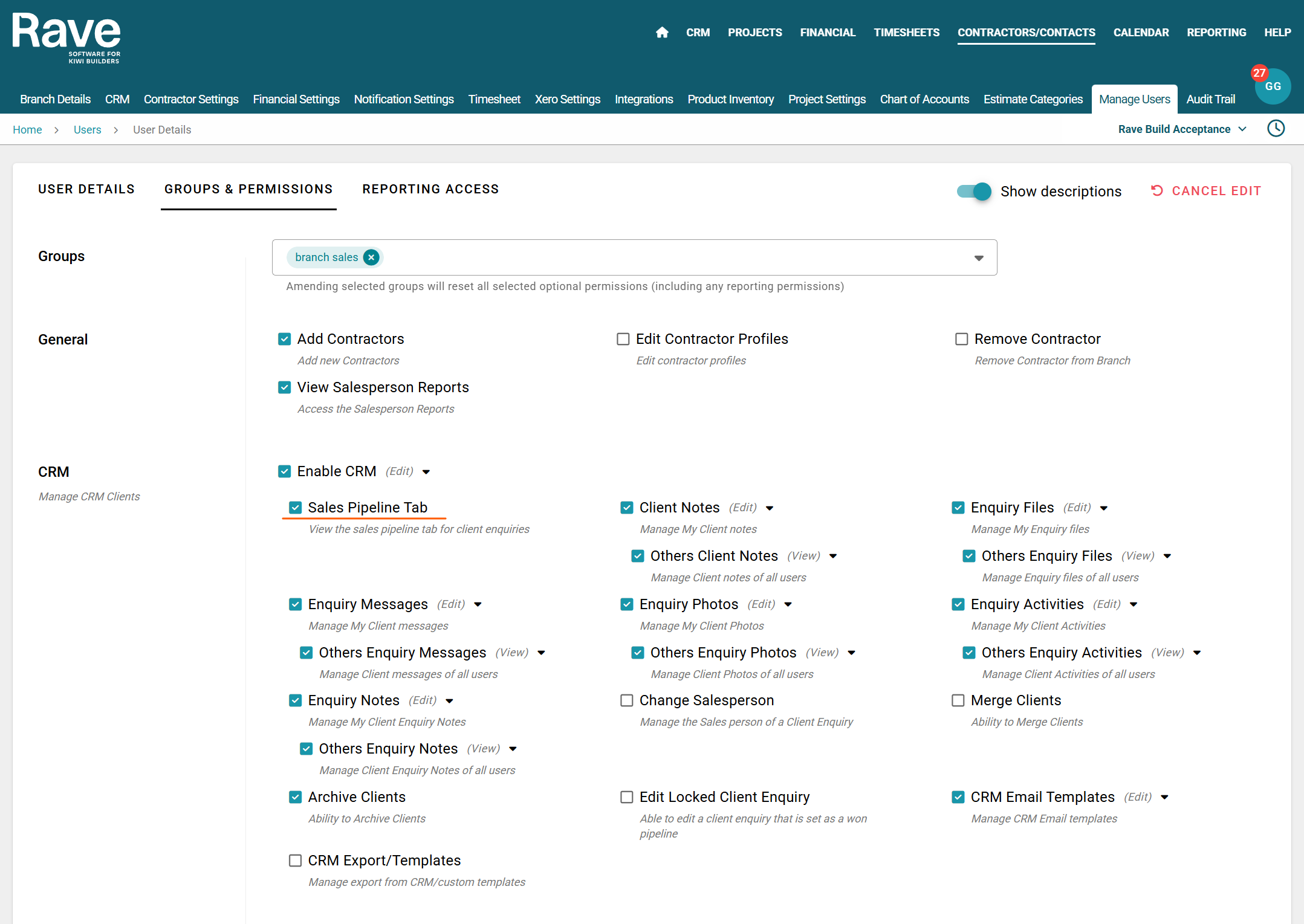This view is turned on by default for all users who have CRM access excluding Clients, Contractors, Site Managers, Site Staff and Timesheet.