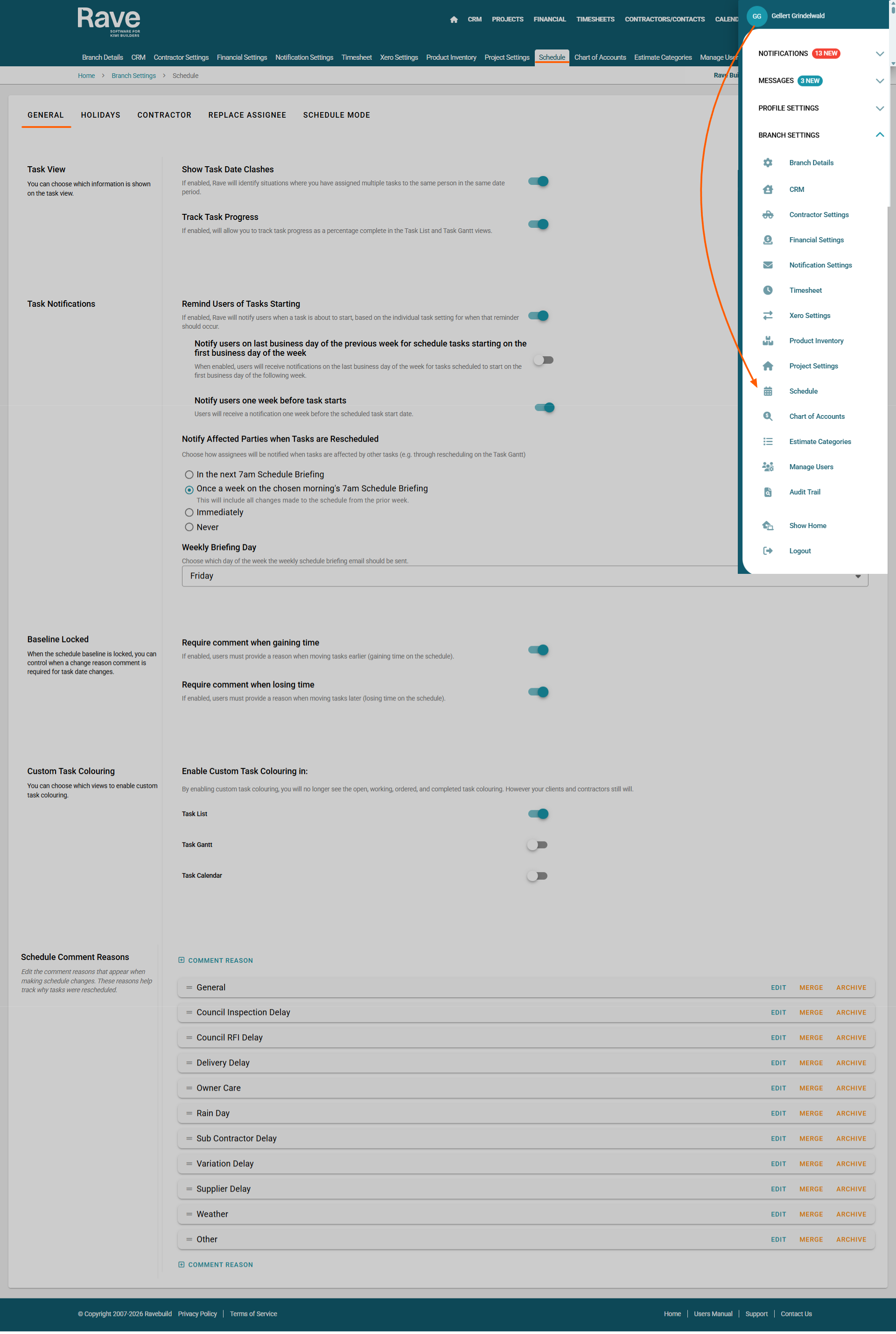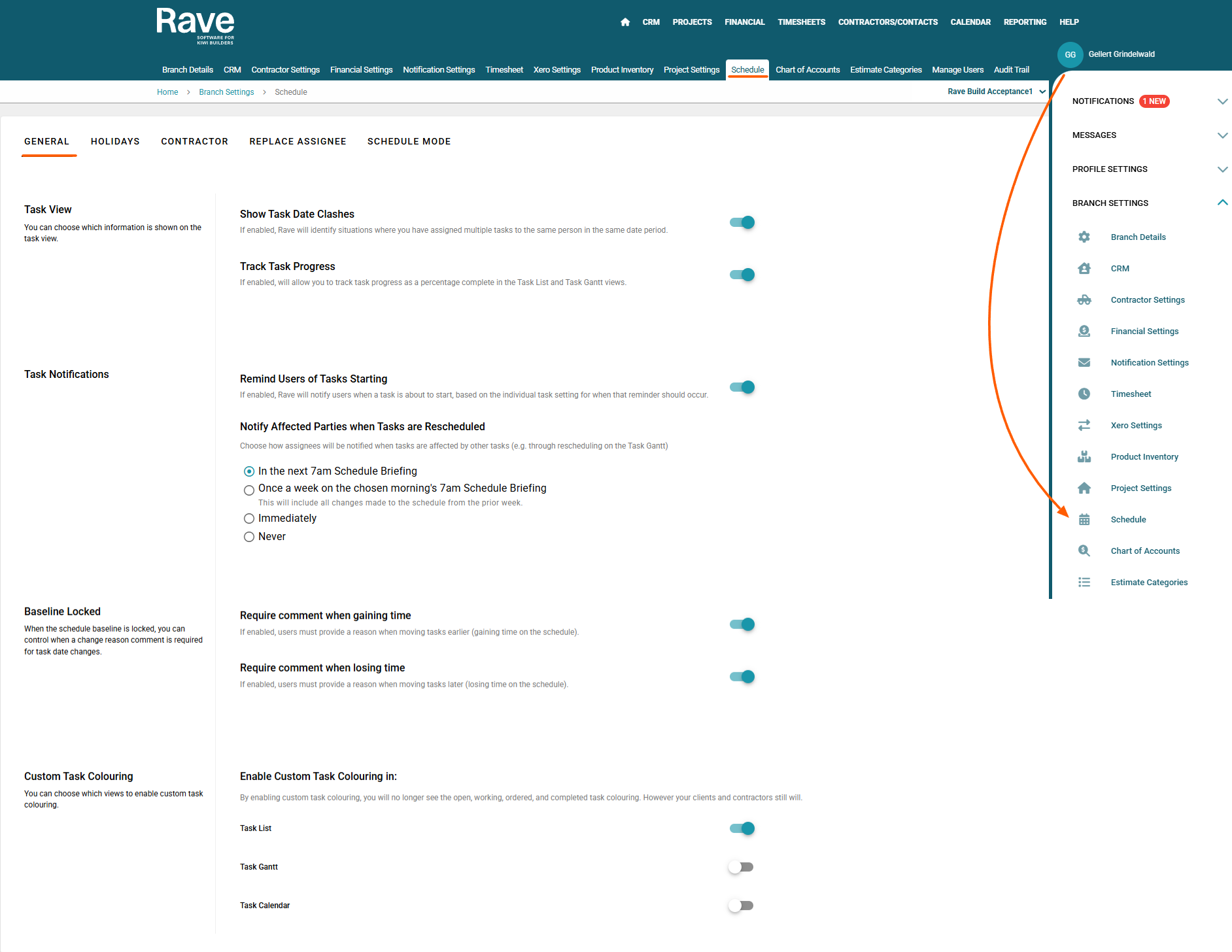 To manage Project specific Schedule Settings click here for the help article.